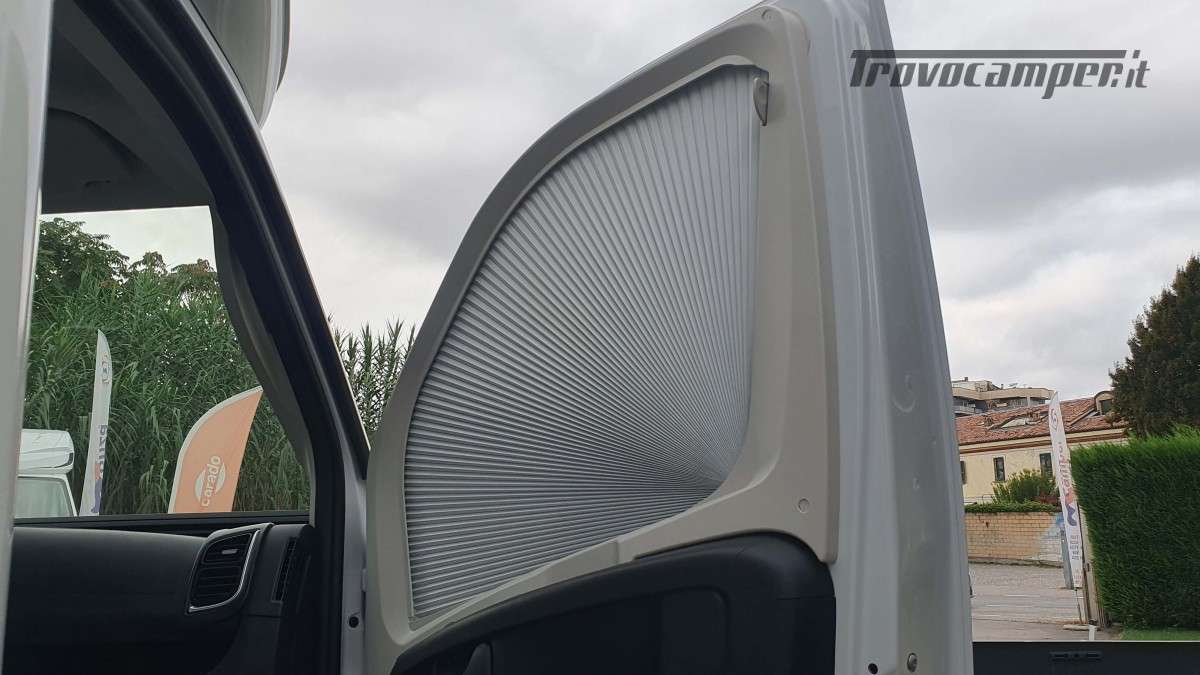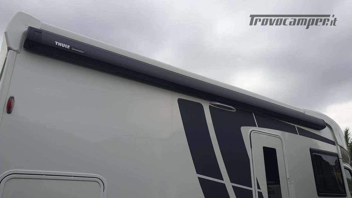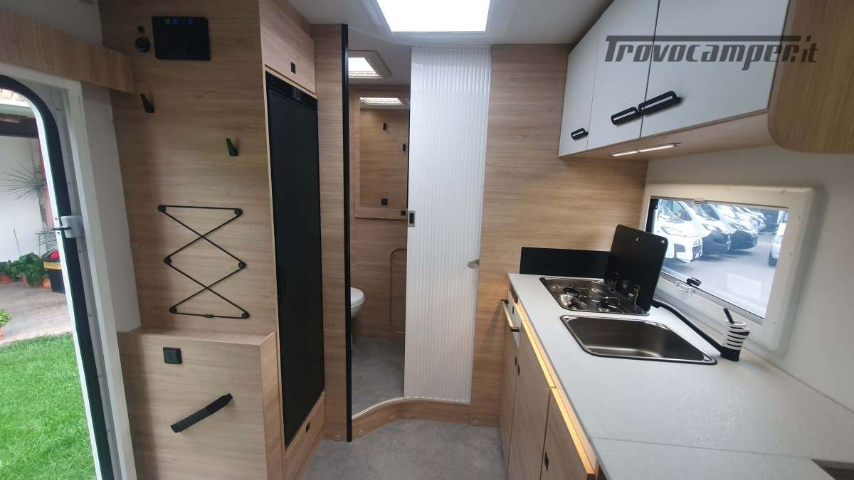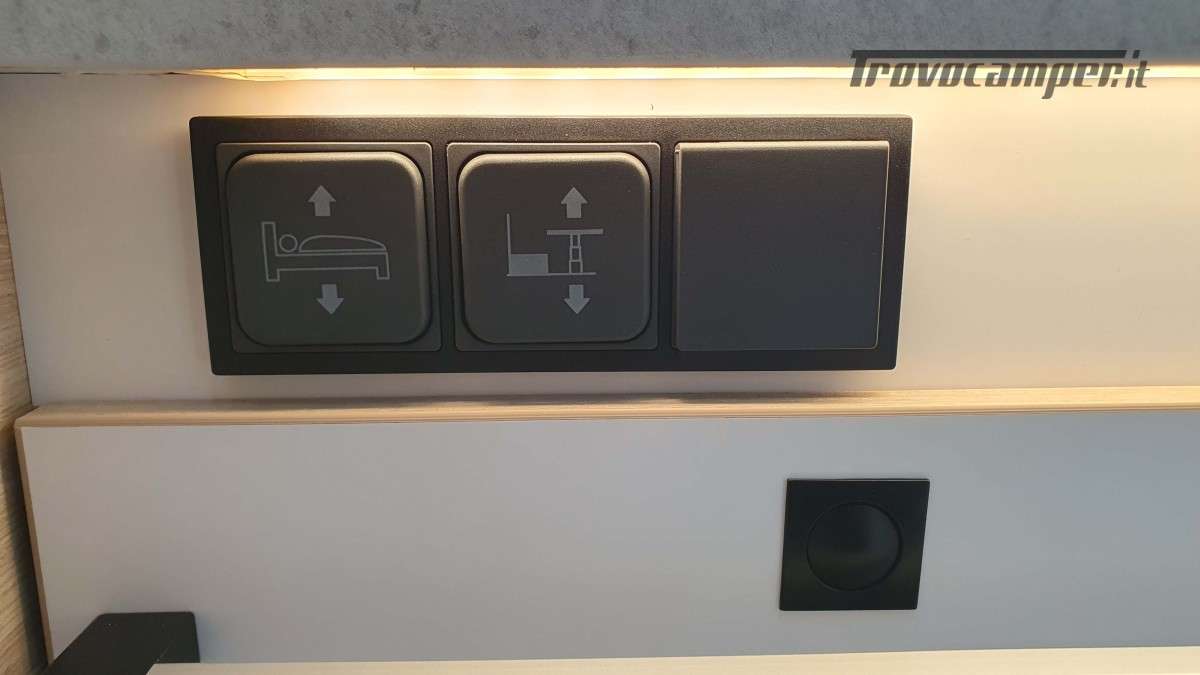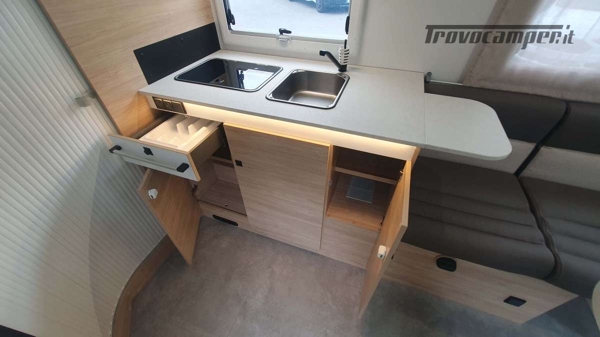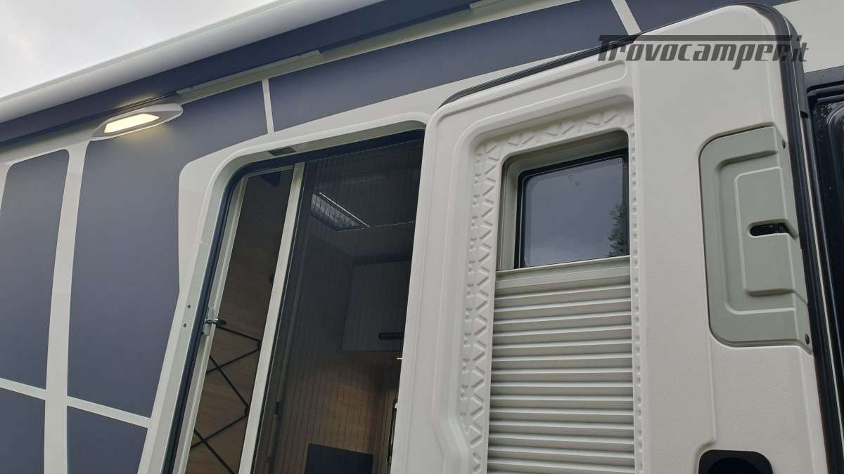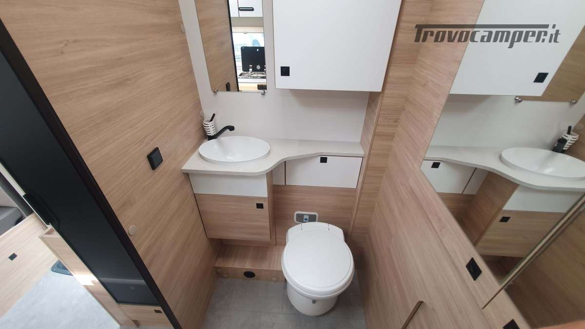 La zona posteriore ospita un bagno comodo e spazioso, con doccia separata e armadi di stivaggio per organizzare al meglio tutti i tuoi effetti personali. A completare il tutto, un ampio garage con secondo portellone permette di trasportare comodamente tutto il necessario per le tue avventure.