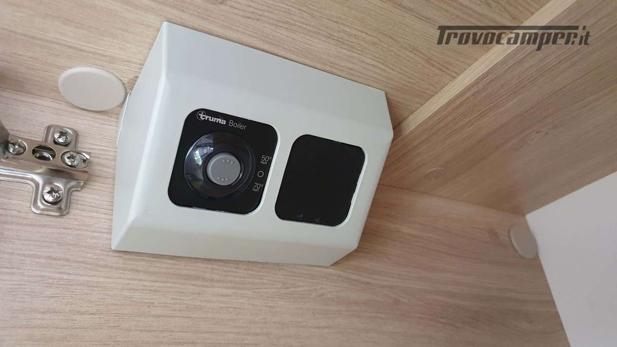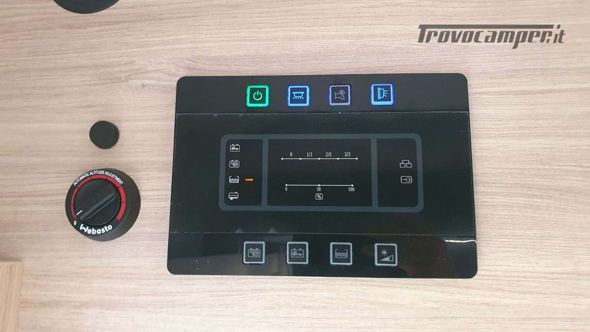 Sotto il cofano troviamo un motore Fiat Ducato Euro 6 da 140 cavalli con cambio automatico a 8 rapporti, che rende la guida semplice e piacevole. Il riscaldamento a gasolio è affidato al sistema Webasto, mentre l’acqua calda è fornita dal sistema Truma, assicurando comfort in ogni stagione.
