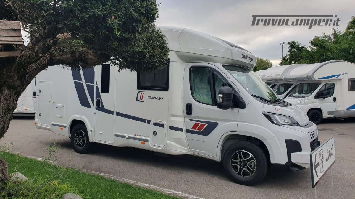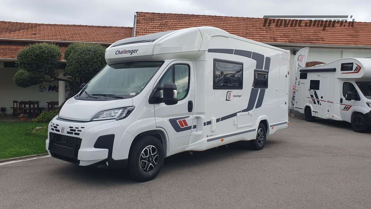 Se cerchi un semintegrale compatto ma ricco di comfort, il Challenger 260 Ultimate Edition è la scelta perfetta. Con una lunghezza di 6,99 metri, è omologato per 4 persone e offre 4 posti letto: un letto matrimoniale basculante elettricamente sopra la dinette e un altro letto matrimoniale che si ottiene trasformando la stessa dinette, per garantire comfort e praticità durante il viaggio.