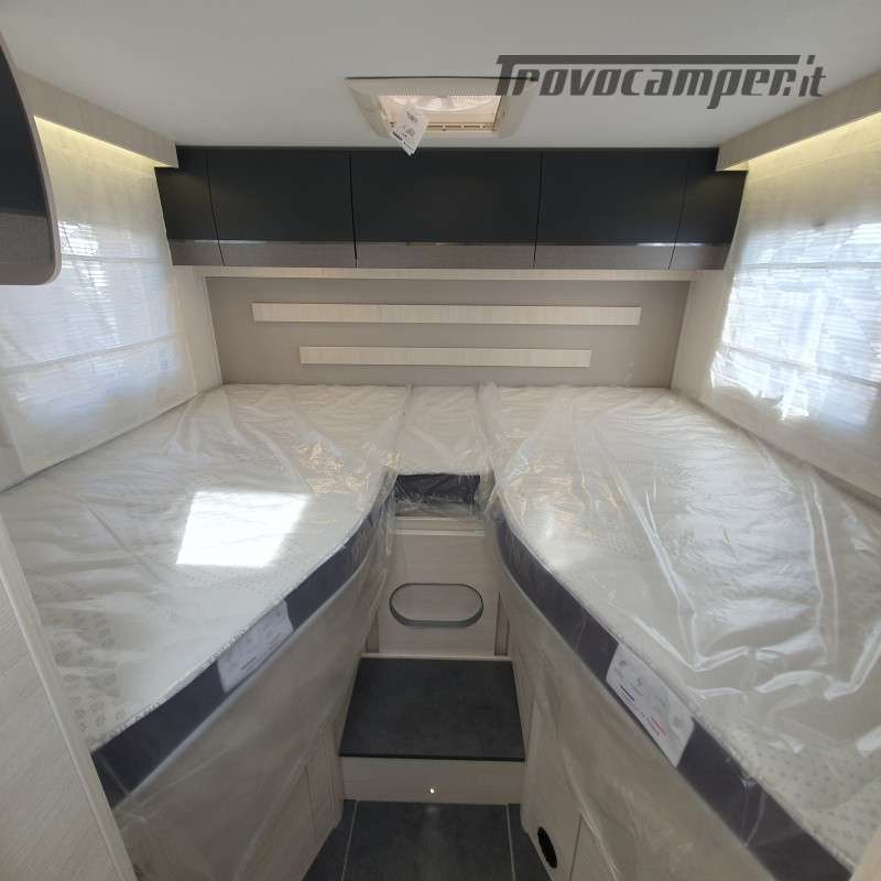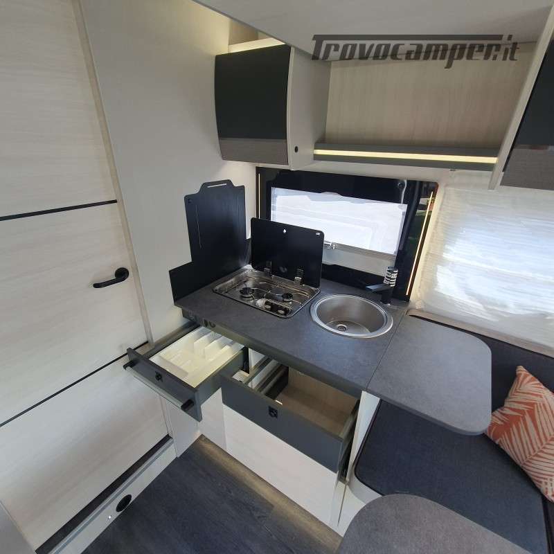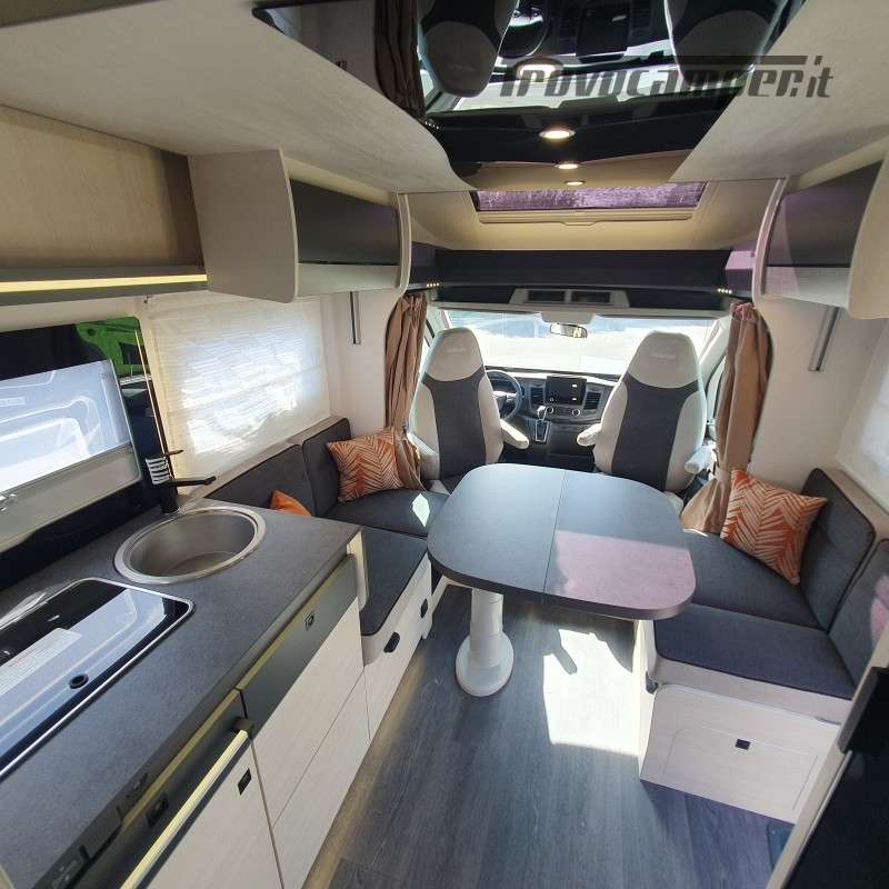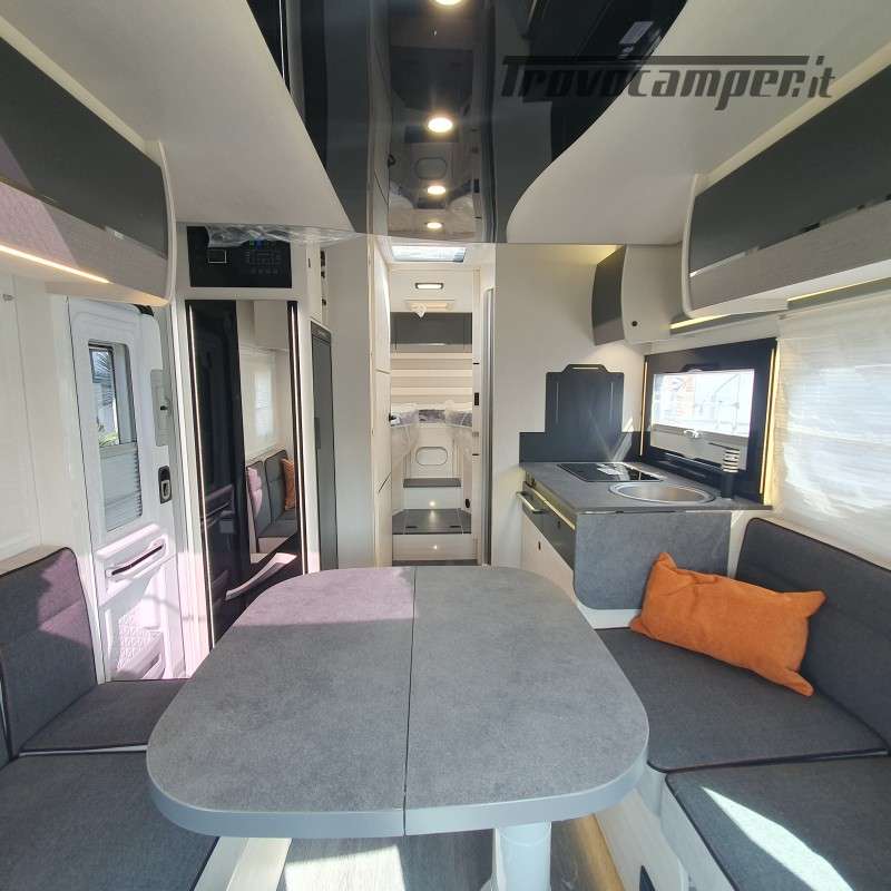 In dinette possiamo ricavare facilmente una ulteriore zona notte grazie al letto basculante elettrico.