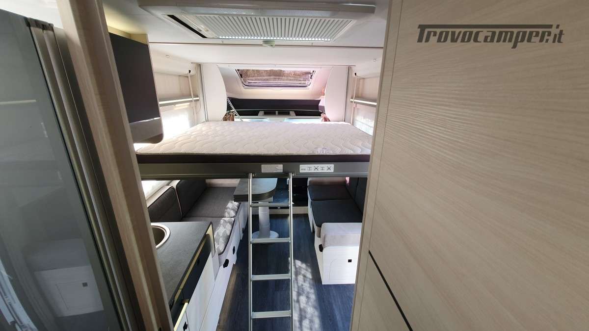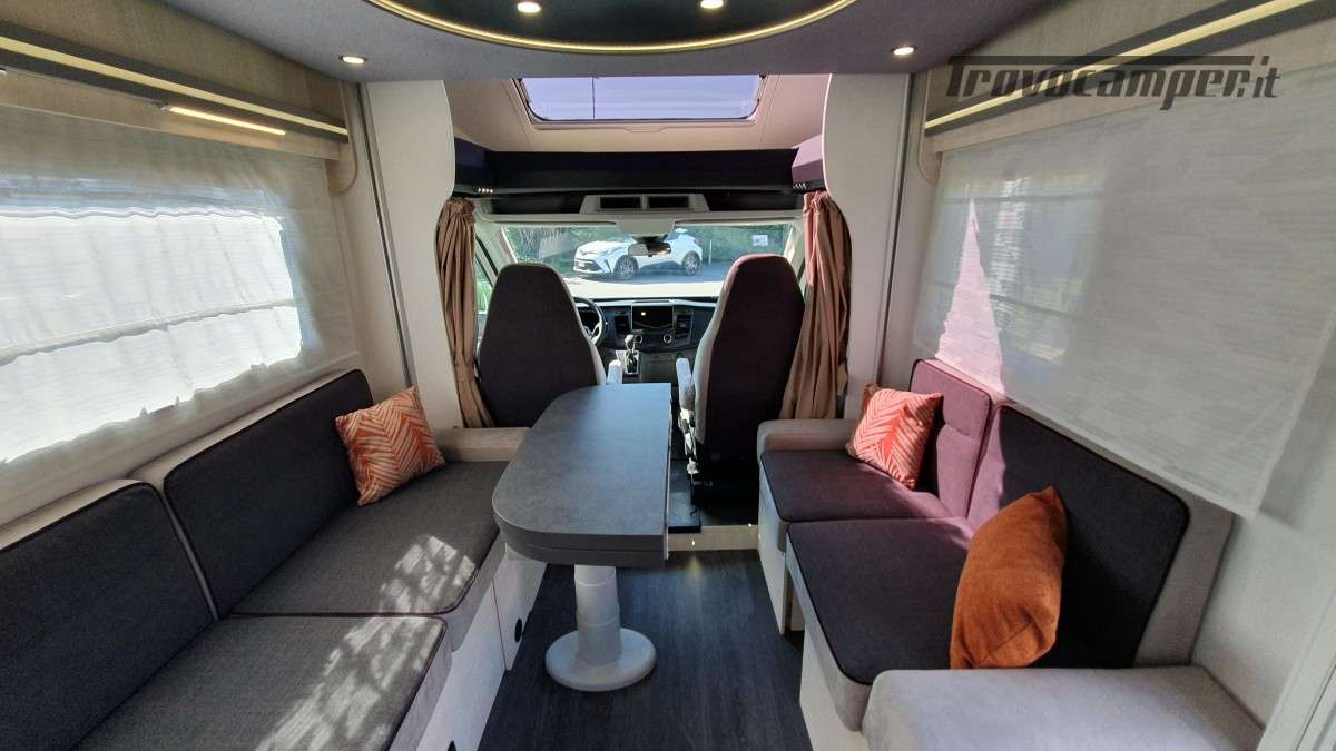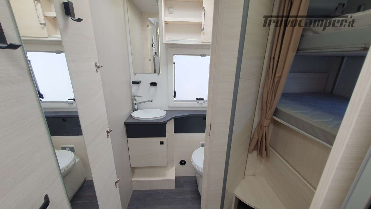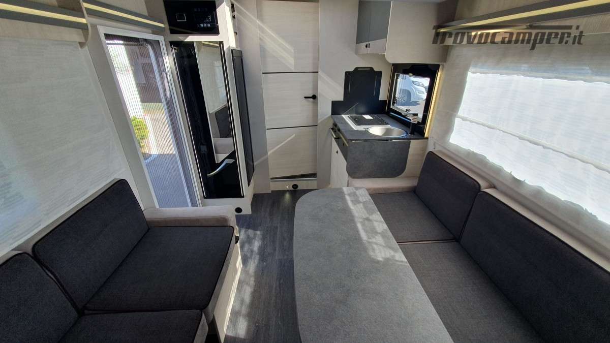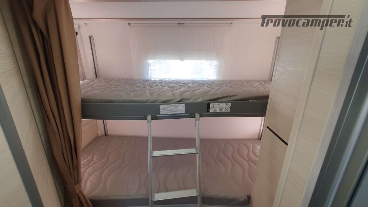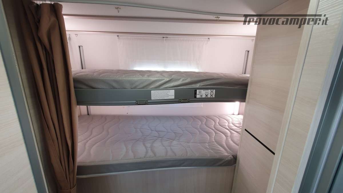 La disposizione interna è pensata per offrire spazio e funzionalità: il letto basculante sopra la dinette face to face e i letti a castello posteriori garantiscono comodi posti per dormire, mentre la dinette face to face crea una zona giorno ampia e accogliente.