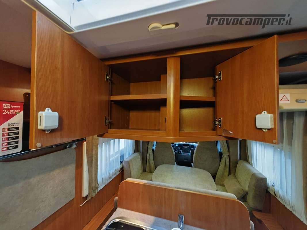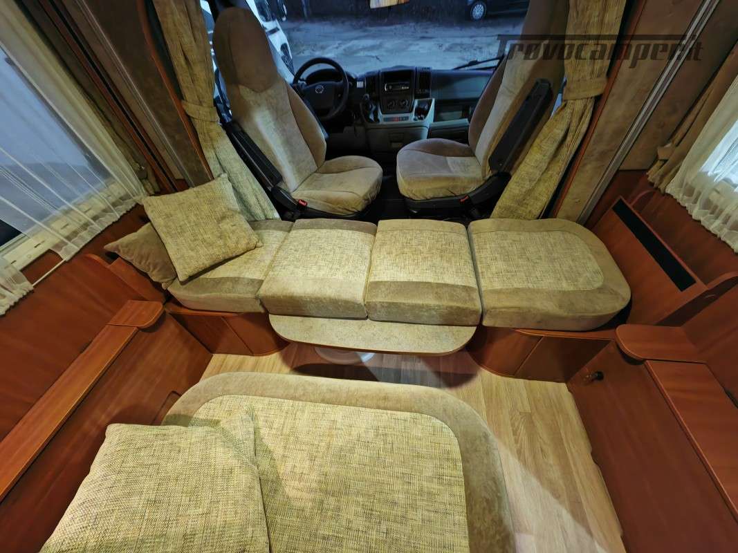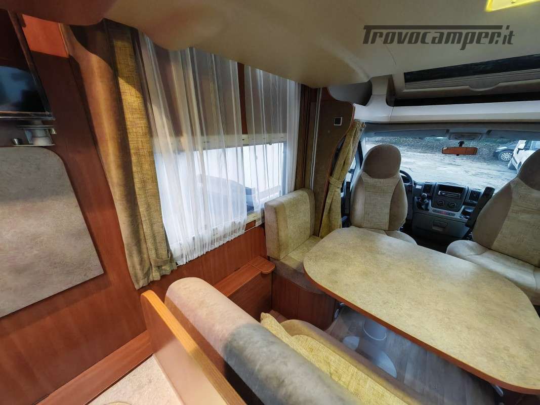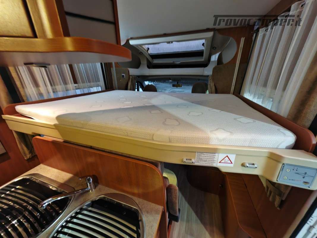Particolarissimo semintegrale con letto basculante sopra zona giorno, spaziosissima dinette anteriore, cucina centrale e toilette con doccia separata di grandi dimensioni, immatricolato 05/2011.