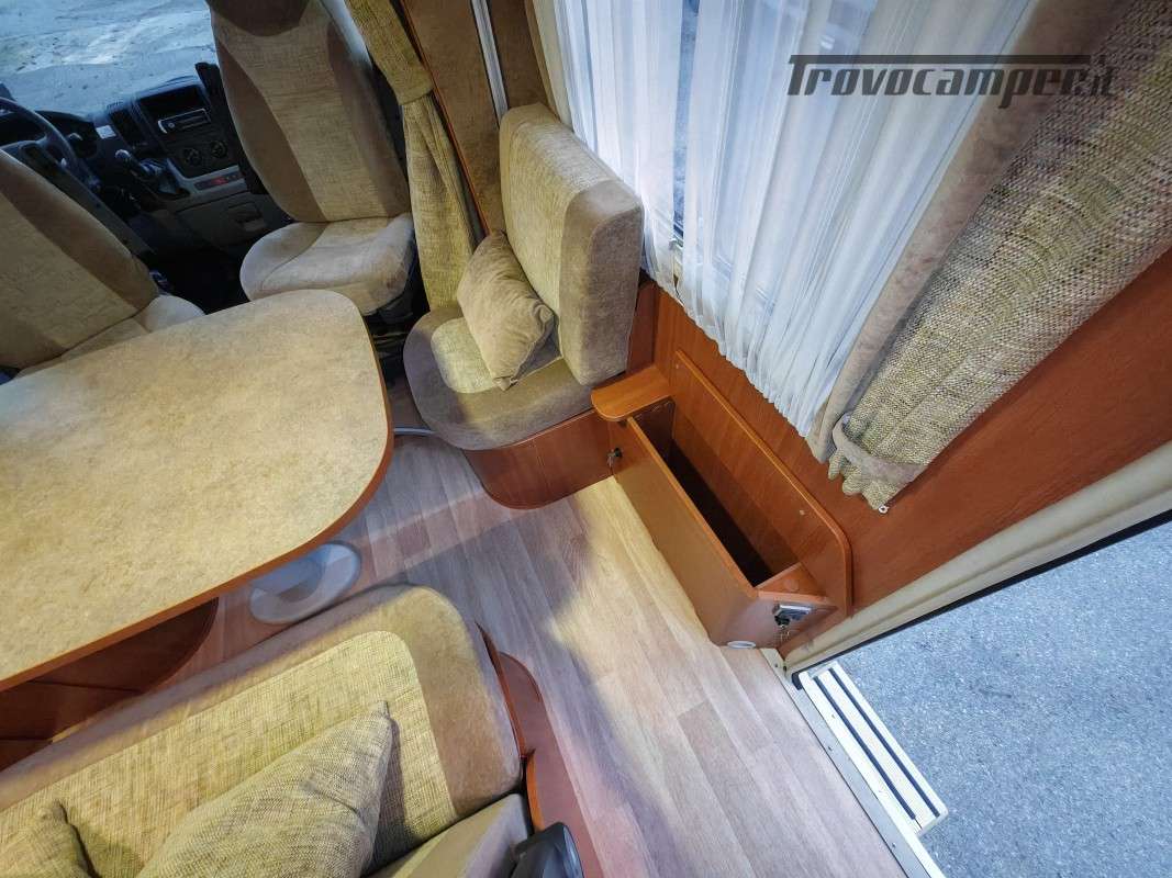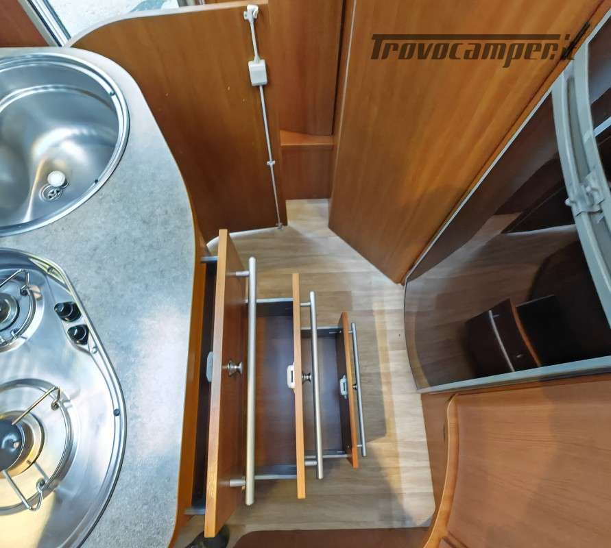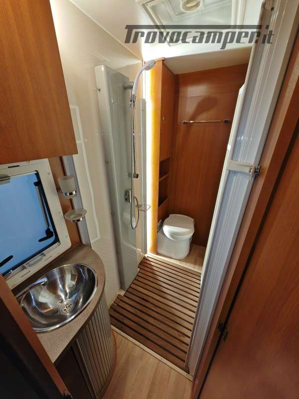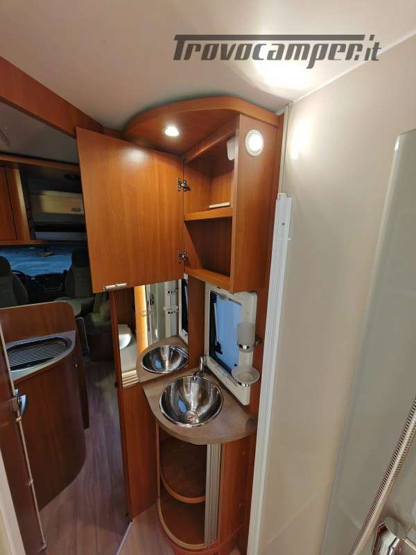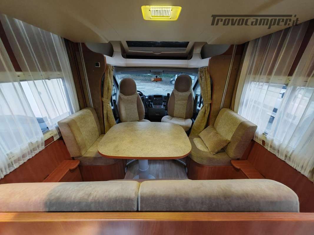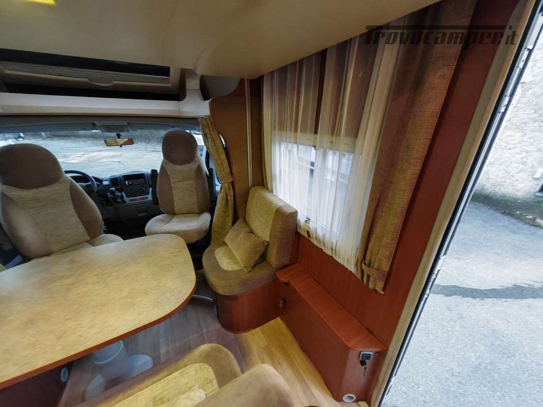 Particolarissimo semintegrale con letto basculante sopra zona giorno, spaziosissima dinette anteriore, cucina centrale e toilette con doccia separata di grandi dimensioni, immatricolato 05/2011.