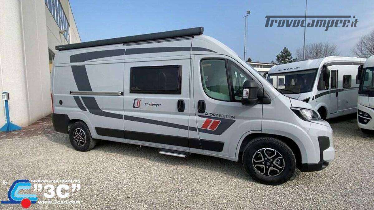 - Pack Van Challenger Tendalino esterno, pannello solare 200W, luce esterna porta d?ingresso, zanzariera per la porta, oscurante cabina, estensioni letto dinette, cornici finestrini posteriori Autoradio DAB/Bluetooth con schermo tattile e comandi al volante e camera di retromarcia : 6000 ?