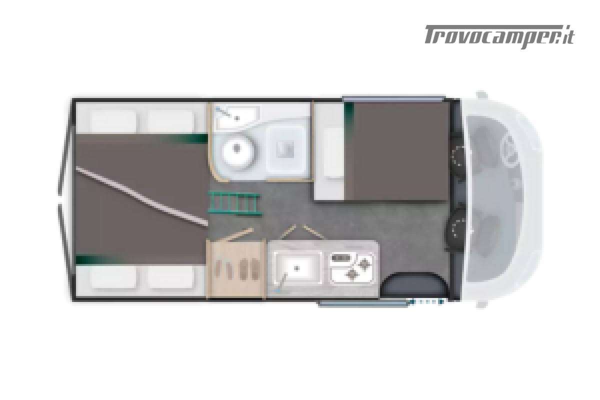 Il V114M Cosy Edition è la novità Challenger della primavera 2026 nell’esclusiva colorazione grigio metallizzata e interni tutti nuovi! Compatto, moderno e perfettamente equipaggiato per la libertà on the road, è il van ideale per chi cerca un equilibrio tra spazio, comfort e praticità. Con una lunghezza di 5,99 metri questo modello è pronto per accompagnarti in nuove avventure, senza rinunciare a nulla ed è pensato anche per le vostre soste in libera: infatti, oltre ad un pannello solare da 200W, troviamo anche una batteria al litio da 100Ah. Sotto il cofano, batte un motore Citroen Jumper 2.2L da 140 cavalli con cambio manuale a 6 rapporti affidabile e scattante, perfetto per affrontare sia viaggi lunghi che percorsi urbani. La cabina è pensata per offrire un’esperienza di guida confortevole e sicura: aria condizionata, oscuranti plissettati e autoradio con retrocamera, rendono ogni tragitto piacevole e rilassato. La zona notte, collocata nella parte posteriore, è uno dei punti di forza di questo van: dispone di quattro posti letto disposti in due letti matrimoniali a castello trasversali, ideali per sfruttare al meglio lo spazio e garantire riposo a tutta la famiglia. Ulteriore novità di questa edizione speciale è il bagno, con parete varia, così da avere una doccia separata, comoda e spaziosa. La cucina, ampia e ben organizzata, è dotata di due fuochi a gas, lavello e frigorifero a compressore da 80 litri, perfetta per preparare i pasti anche durante i viaggi più lunghi. Il riscaldamento e l'acqua calda sono invece gestiti dal sistema Truma Combi a gasolio.