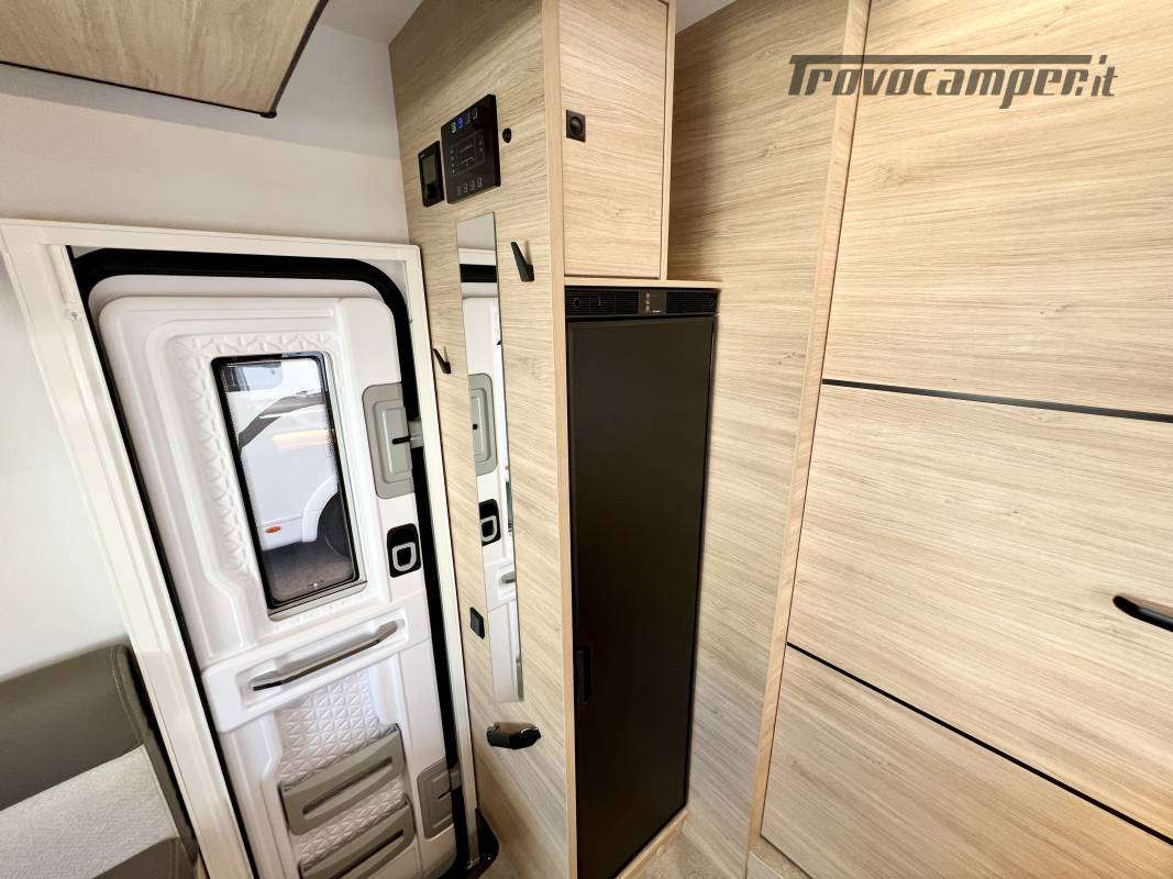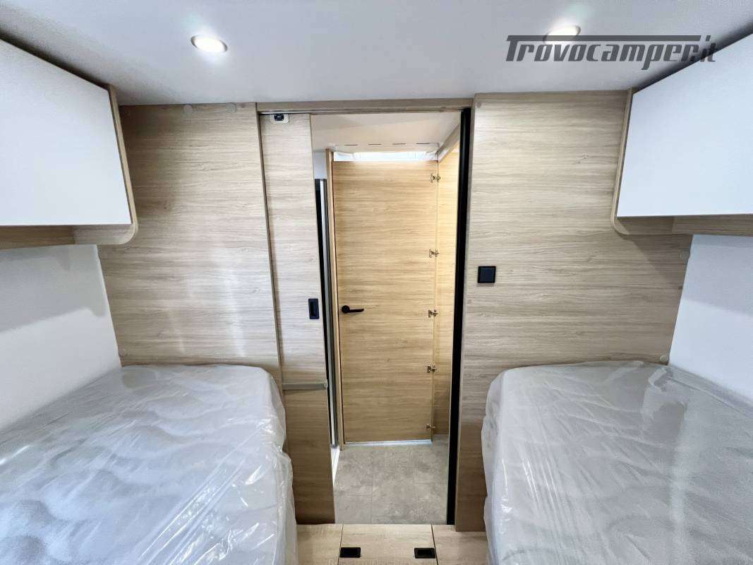 CABINA BIANCA, CLIMATIZZAZIONE MANUALE CABINA, AIRBAG CONDUCENTE + PASSEGGERO, FIX E GO, SEDILI CABINA GIREVOLI REGOLABILI IN ALTEZZA CON DOPPIO BRACCIOLO, FODERE SEDILI CABINA COORDINATE CON I TESSUTI CELLULA, RETROVISORI ELETTRICI, CRUISE CONTROL, ESP, TRACTION+, HILL DESCEND CONTROL, ECO PACK, ISOLAMENTO GADINO INGRESSO, PORTA CELLULA CON FINESTRA, TETTO PANORAMICO APRIBILE, OBLO’ PANORAMICO, PRESA USB/USB-C, PNEUMATICI 4 STAGIONI, FENDINEBBIA, PORTA INGRESSO LUSSO, RISCALDAMENTO A GASOLIO, ILLUMINAZIONE ESTERNA SPORTELLO INGRESSO, ARMADIO, ISOFIX