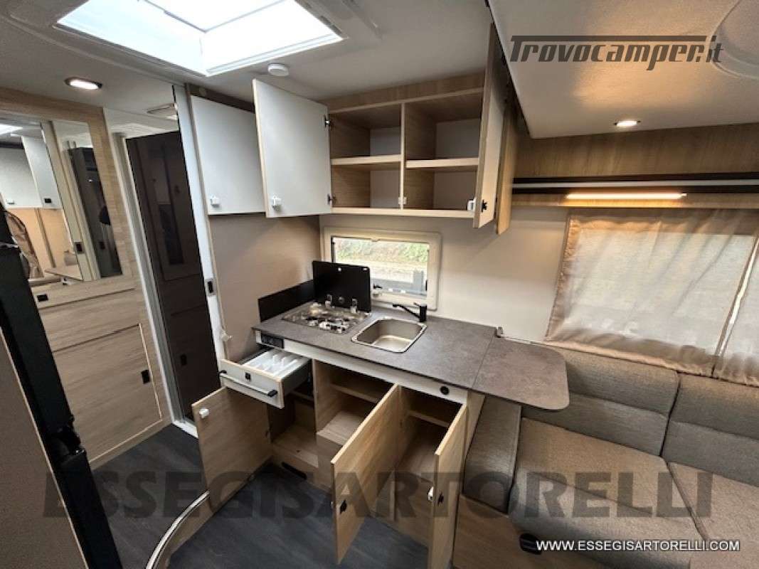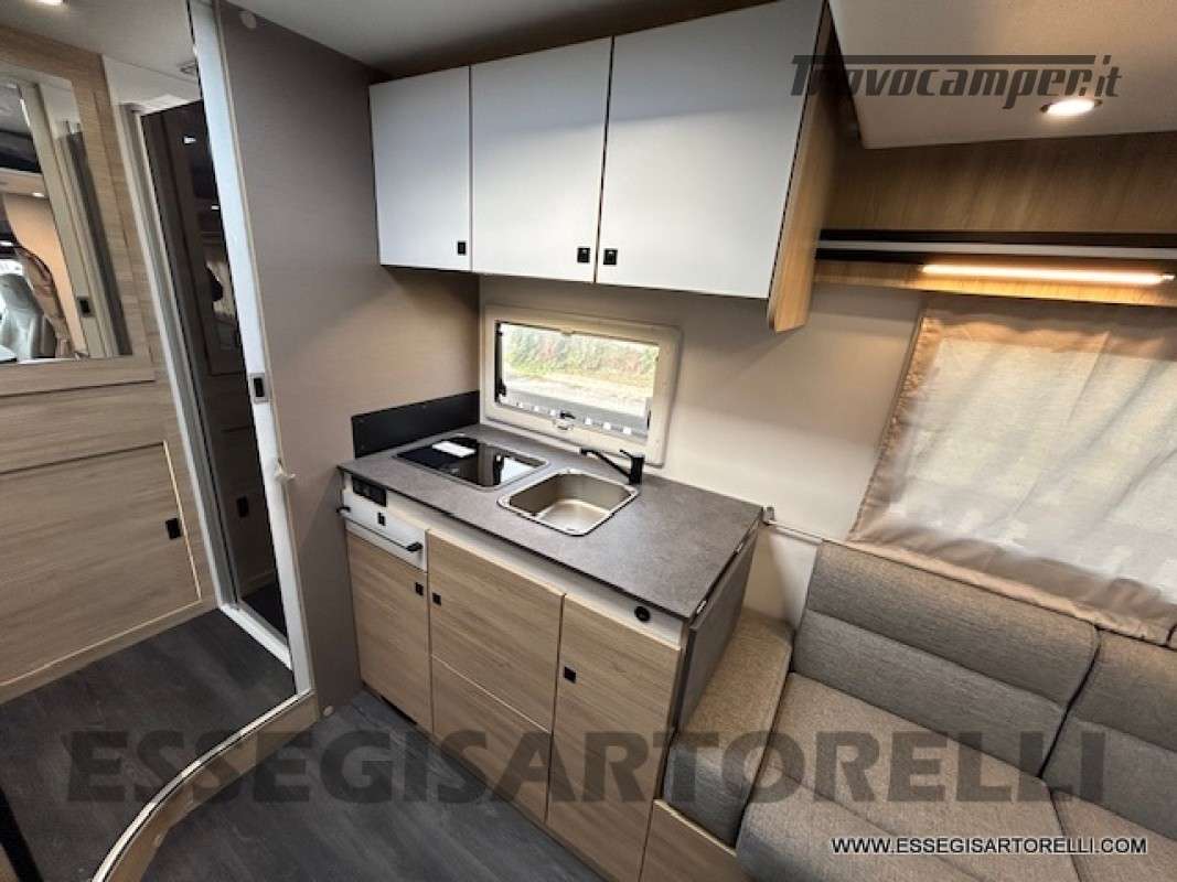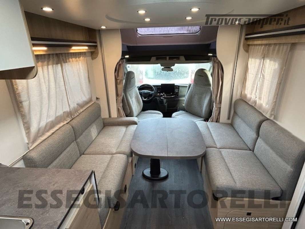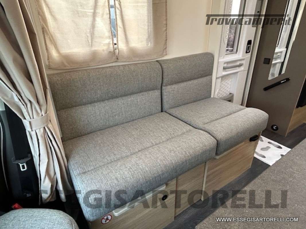 sedili dinette con integrate le strutture traslabili per trasformazione in marcia