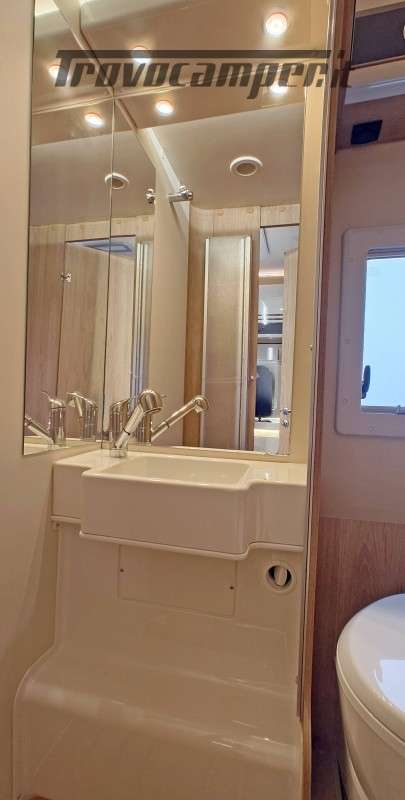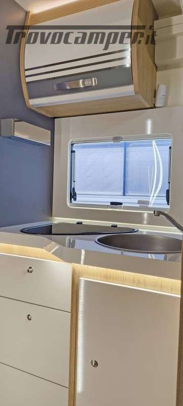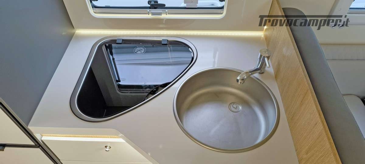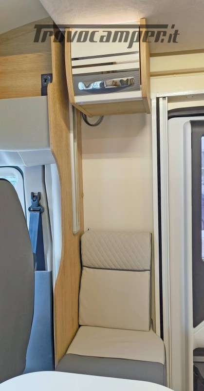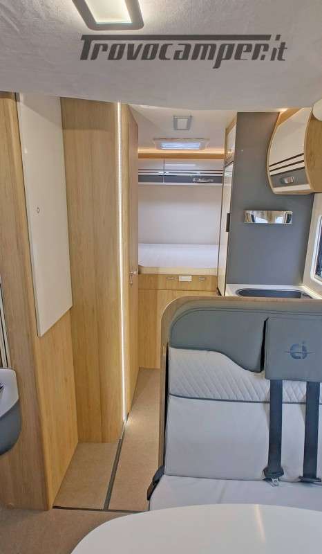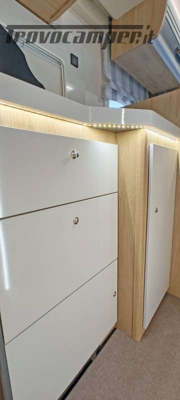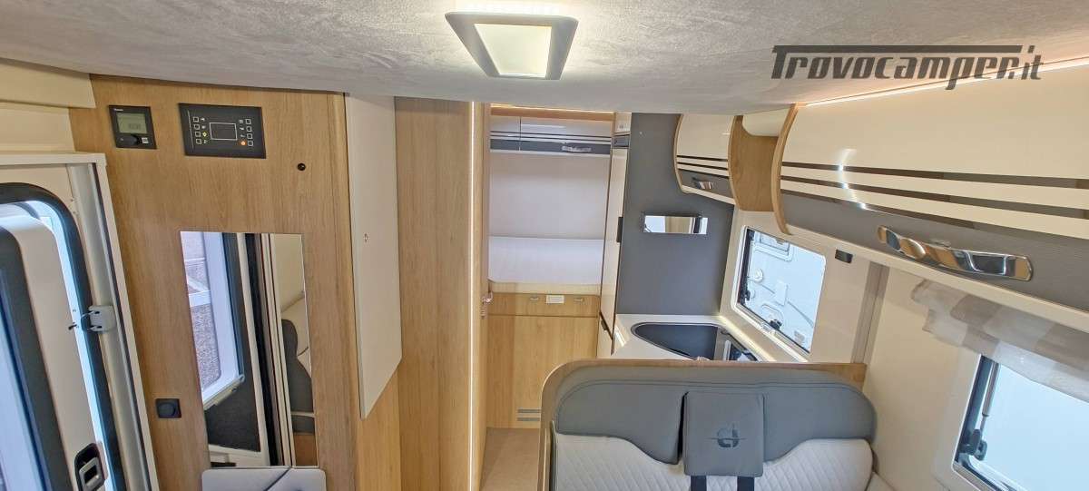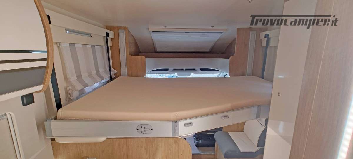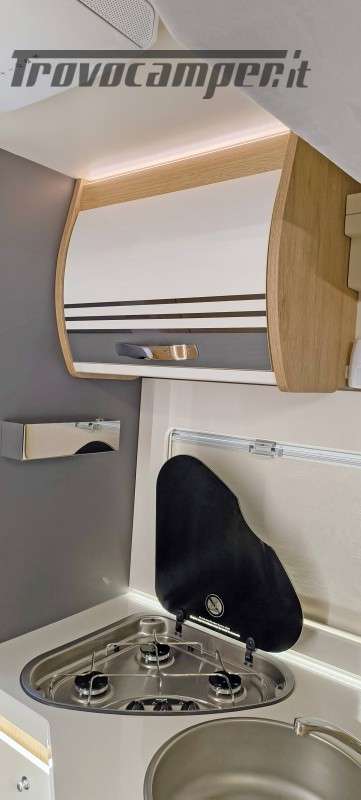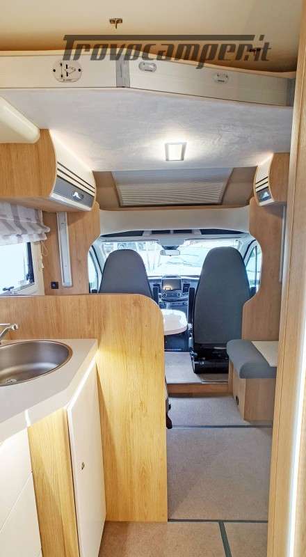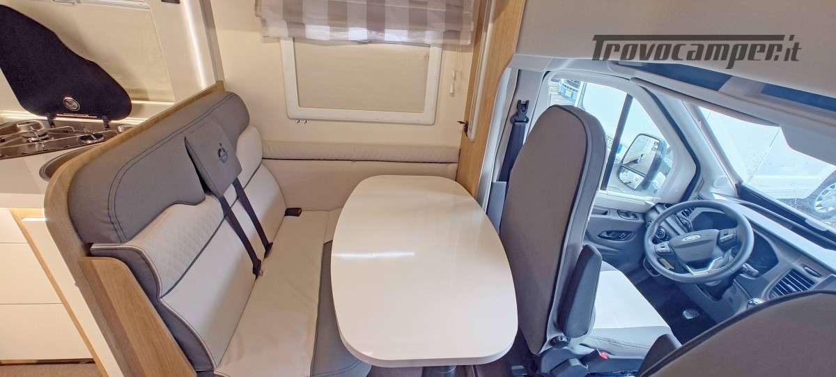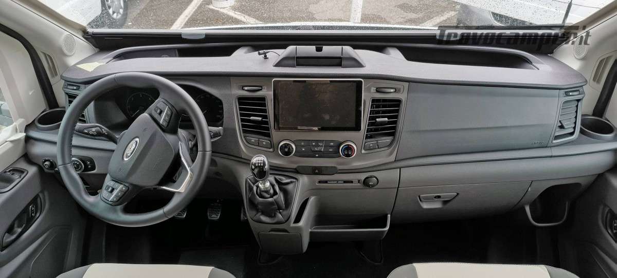 Il modello può ospitare fino a cinque persone in posti omologati e dispone di cinque posti letto standard, più precisamente un letto basculante matrimoniale e un letto matrimoniale trasversale posteriore. Bagno con cabina doccia, cucina ad L con frigo 140l, dinette a L con divanetto singolo e sedili anteriori girevoli completano l'abitacolo.