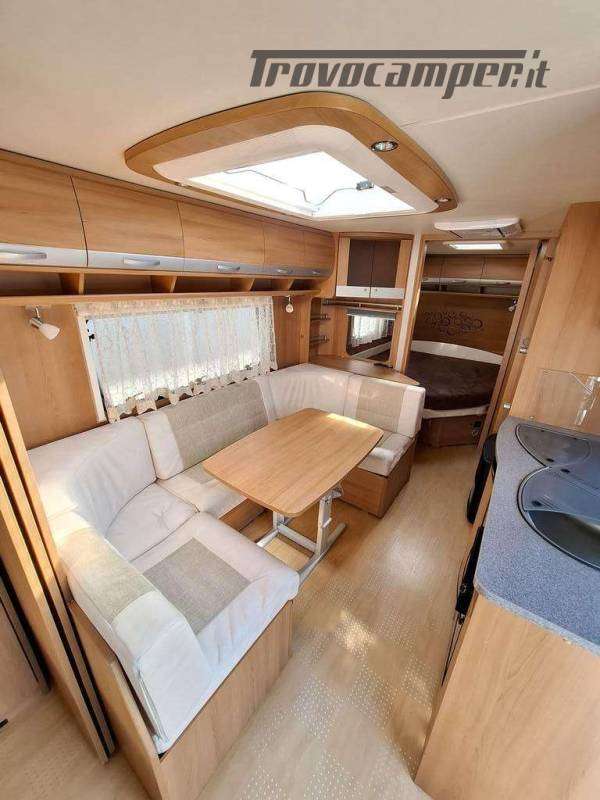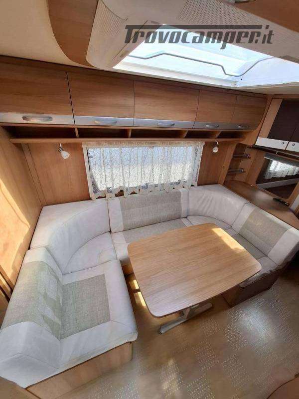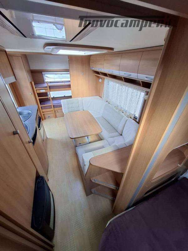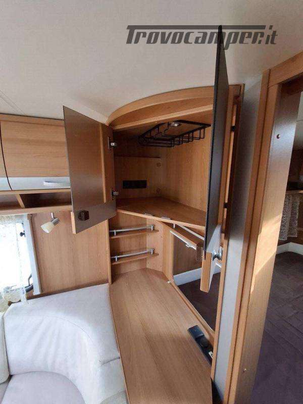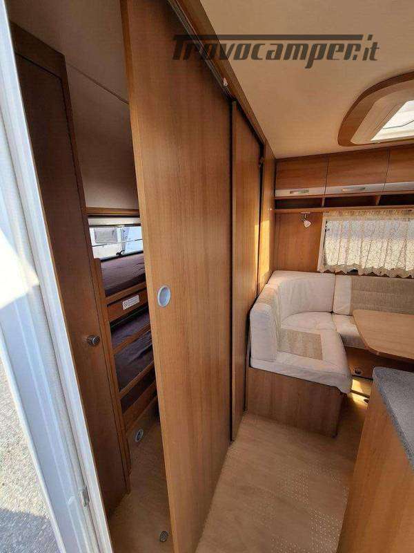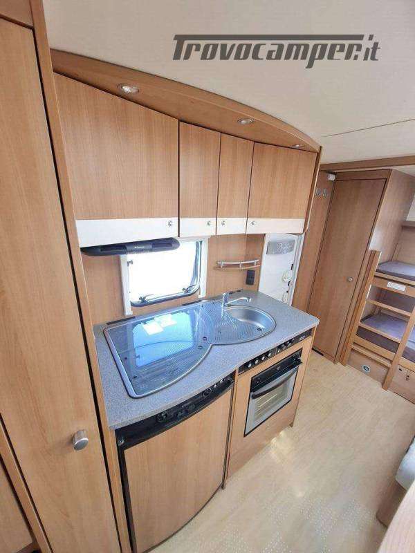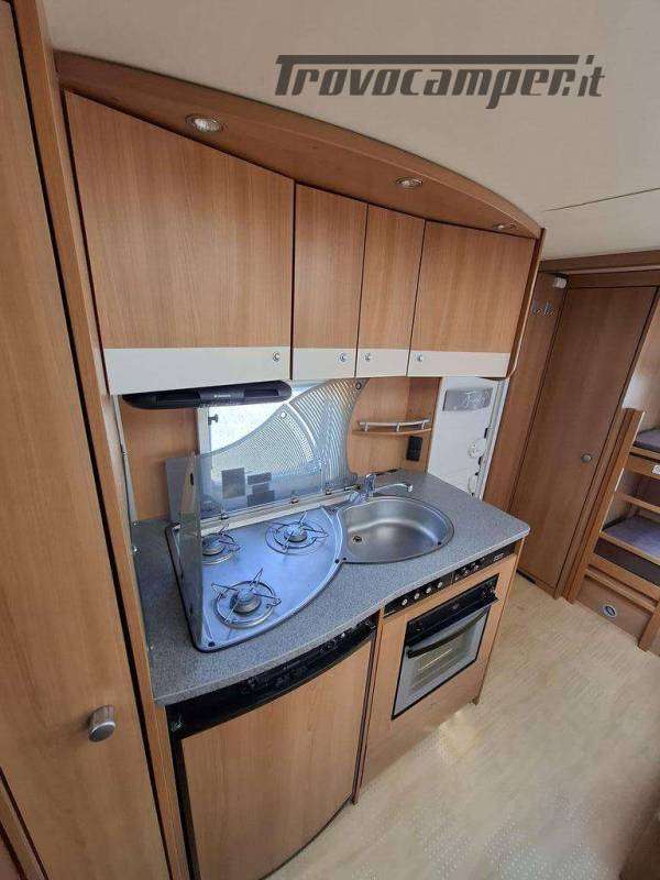 Telaio AL-KO, Stabilizzatore AL-KO, Climatizzatore Teleco Silent, Movimentatore con c.b. fisso, Tendalino Fiamma F45L, Portabici Fiamma basculante a 2 posti, Antenna TV terrestre Teleco, Pareti laterali verniciate, Piedini di stazionamento rinforzati, bigfoot Fiamma, Sportello di servizio laterale dx, Vano bombole 2x12kg con apertura a pantografo, Attacco rapido del gas esterno, Carter copritimone, Luce esterna, Luce esterna integrata al tendalino, Porta ingresso a scuderia, Zanzariera scorrevole all'ingresso, Maxi oblò centrale, dinette a ferro di cavallo trasformabile a letto, cucina con 3 fuochi, cappa aspirante, forno a gas, frigo trivalente da 98lt., Riscaldamento Trumatic, Termoventilazione 12V, Boiler 220V, Boiler a gas 10lt., Divisorio a porta rigida per letto a castello, Divisorio a porta rigida per letto matrimoniale, Bagno con finestra, Toilette a cassetta estraibile, doccia con porta rigida, piatto doccia con 2 punti di scarico, oblò in doccia, Serbatoio acqua potabile fisso da 80lt., Serbatoio di recupero acque grigie con ruote.