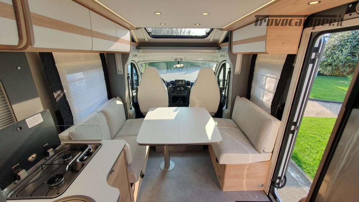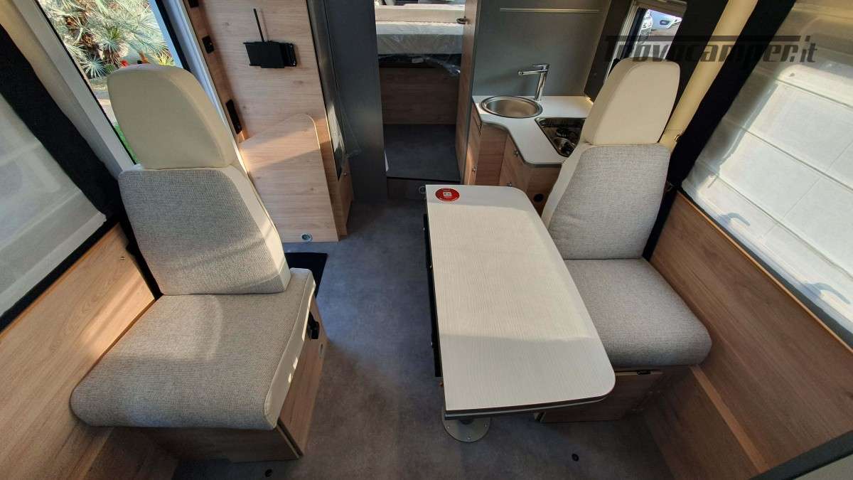 La zona giorno accoglie una dinette spaziosa e accogliente, ideale per rilassarsi o pranzare in compagnia, mentre la cucina a gas con 2 fuochi, lavandino e frigorifero trivalente da 134 litri ti permette di preparare pasti con la massima comodità anche in viaggio.