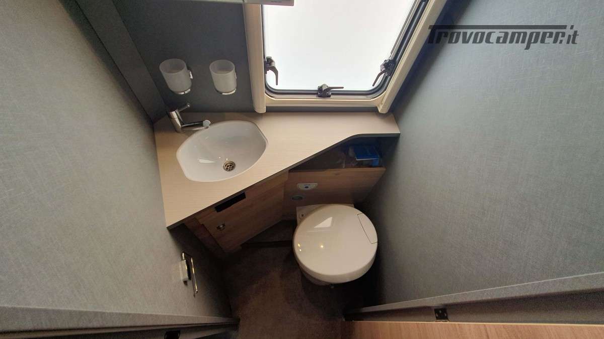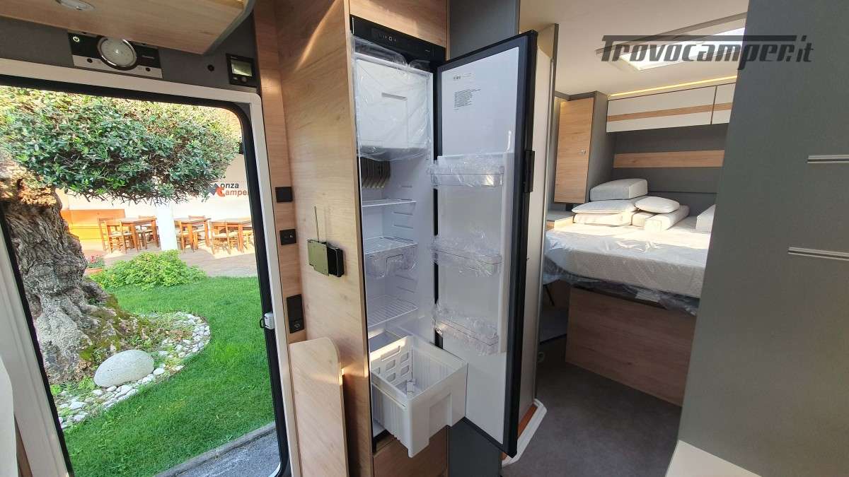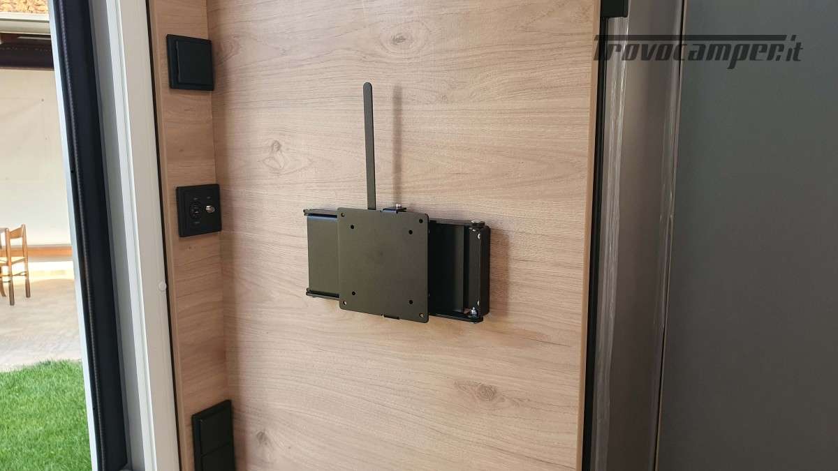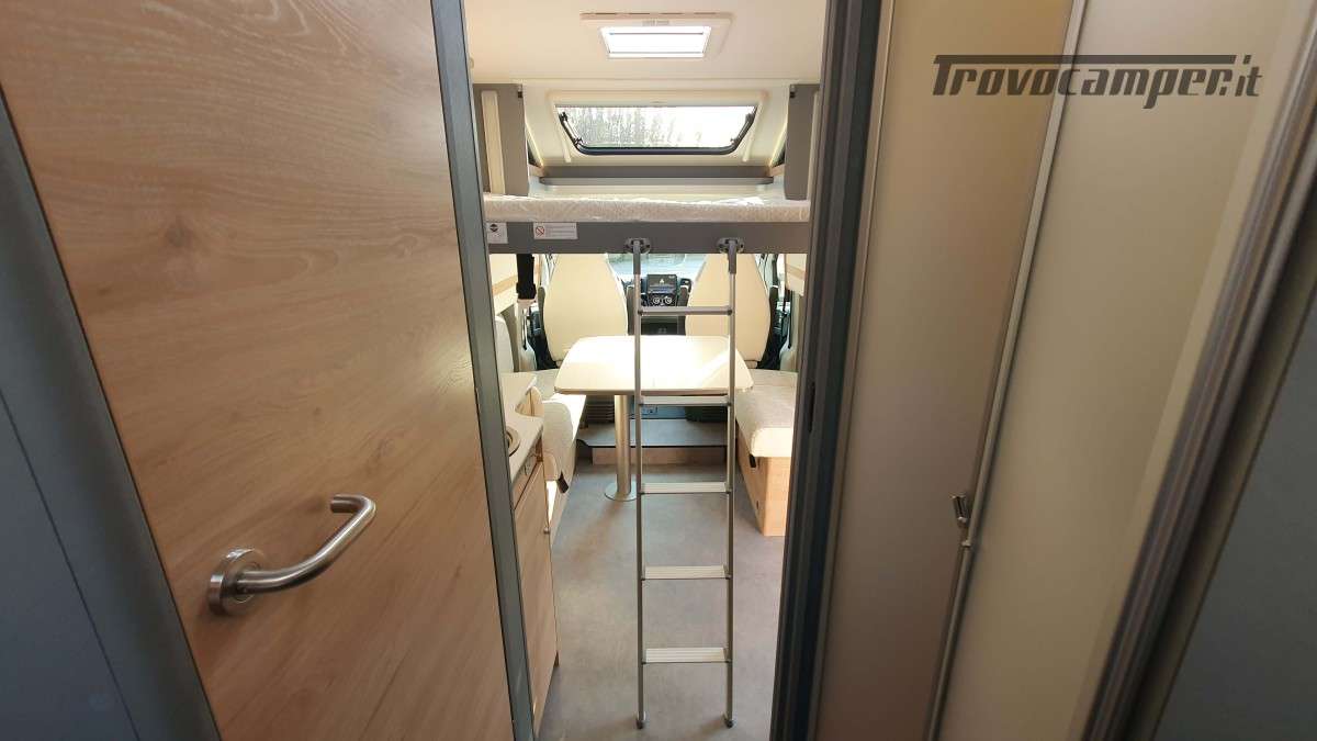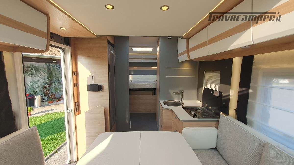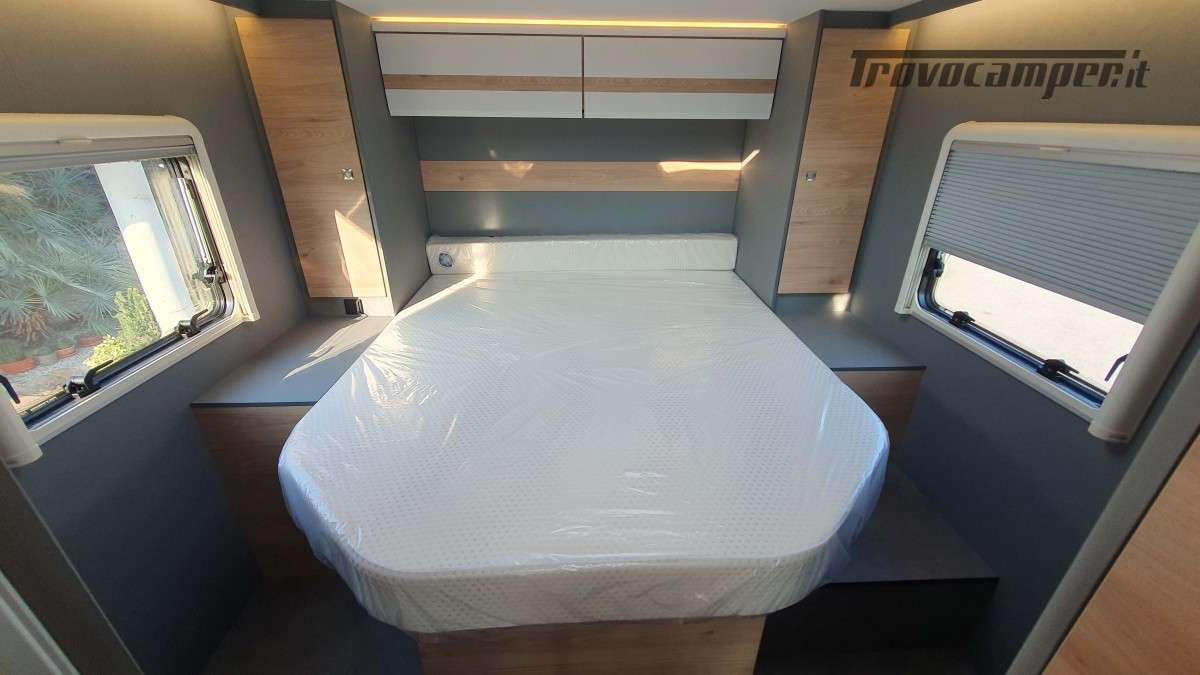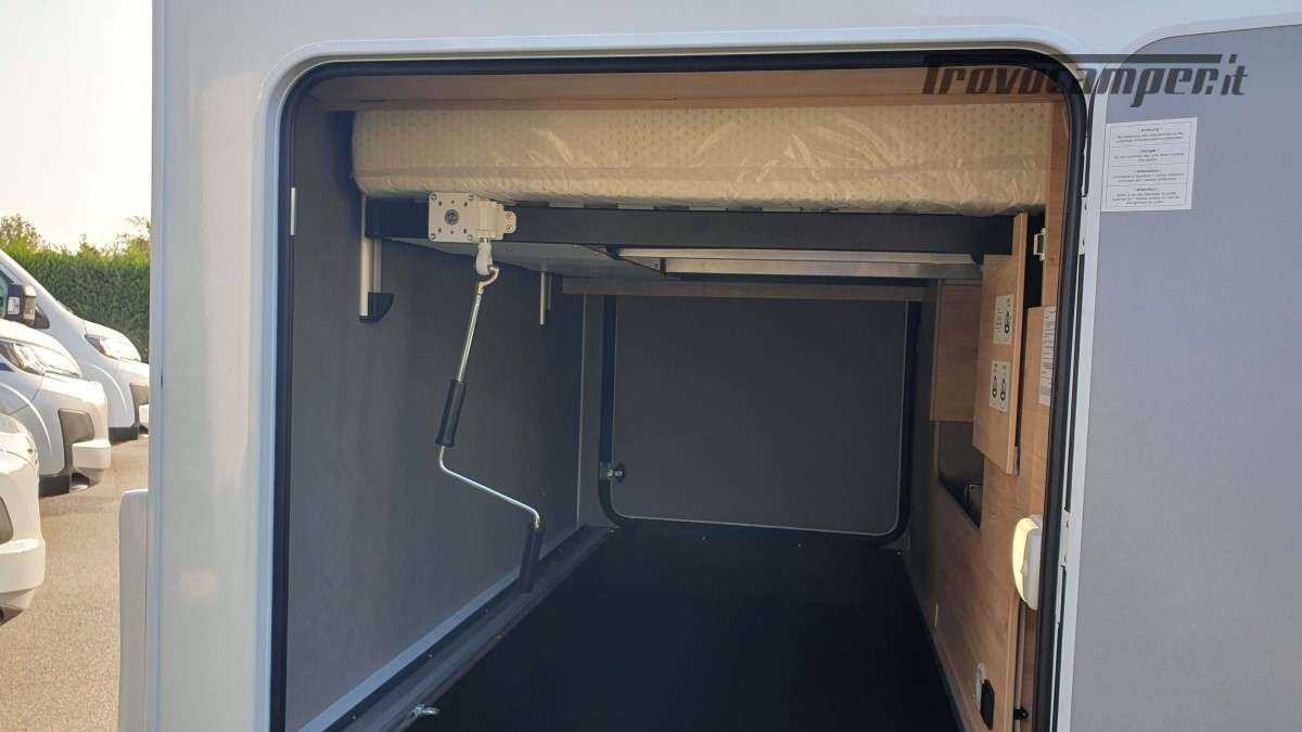 Un secondo letto matrimoniale basculante elettrico sopra la dinette completa la zona notte, offrendo ulteriore comodità per gli ospiti.