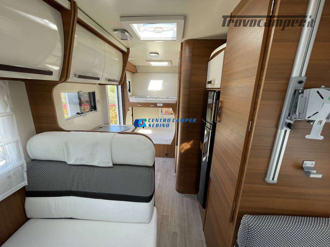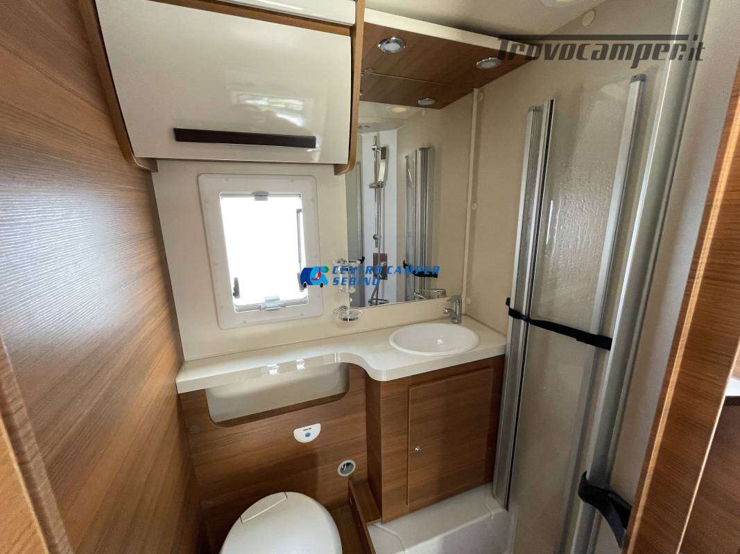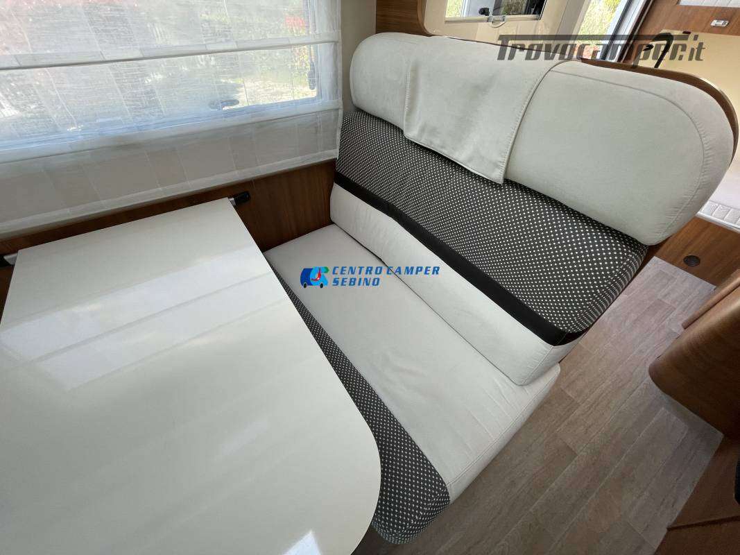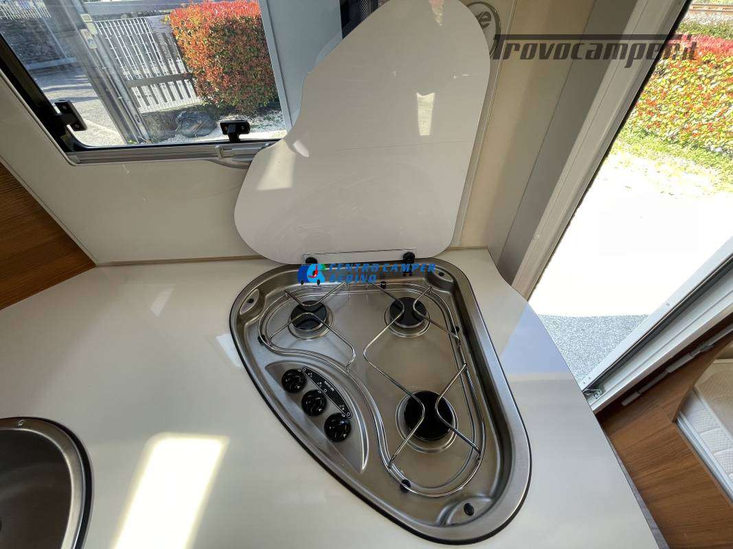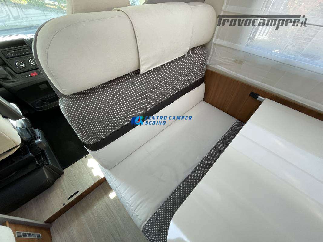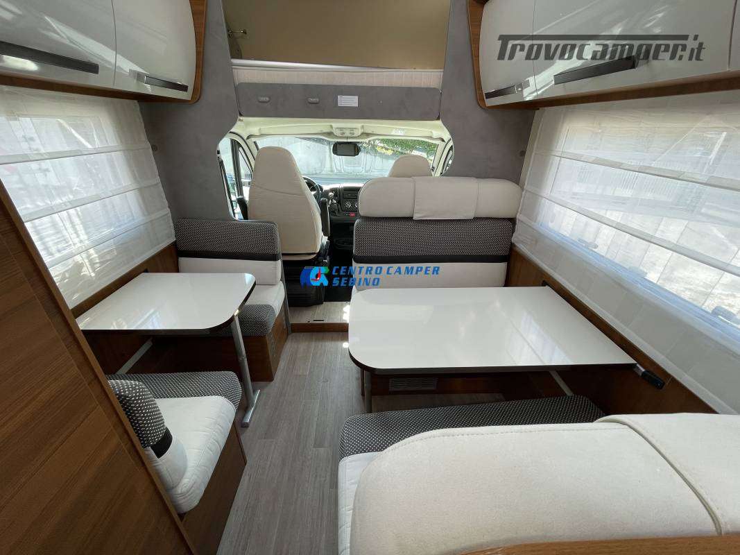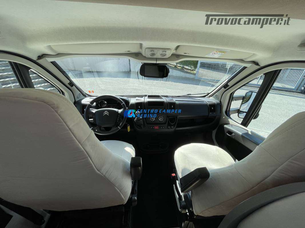 Disposizione interna versatile e spaziosa con ampia mansarda finestrata, doppia dinette e letti a castello trasversali, gavone a volume variabile, cucina ad angolo e bagno con finestra e con doccia separata (comodo box doccia con antine in plexiglass, no tendina).