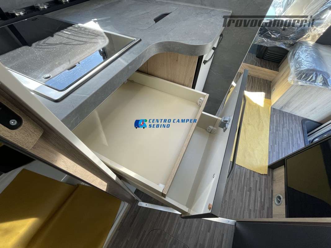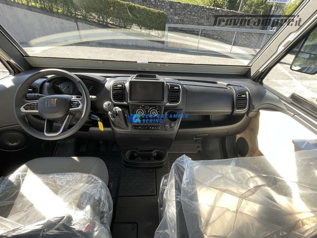 - PACK EXPO con Fendinebbia, Cerchi in lega 16" bicolore, Volante e pomello cambio in pelle, TPMS - Controllo automatico pressione pneumatici, Freno a mano elettrico, Radio 9" PIONEER Bluetooth Apple Car Play&Android Auto, Retrocamera, Pannello solare 200w con regolatore MPPT, Oscuranti plissettati in cabina