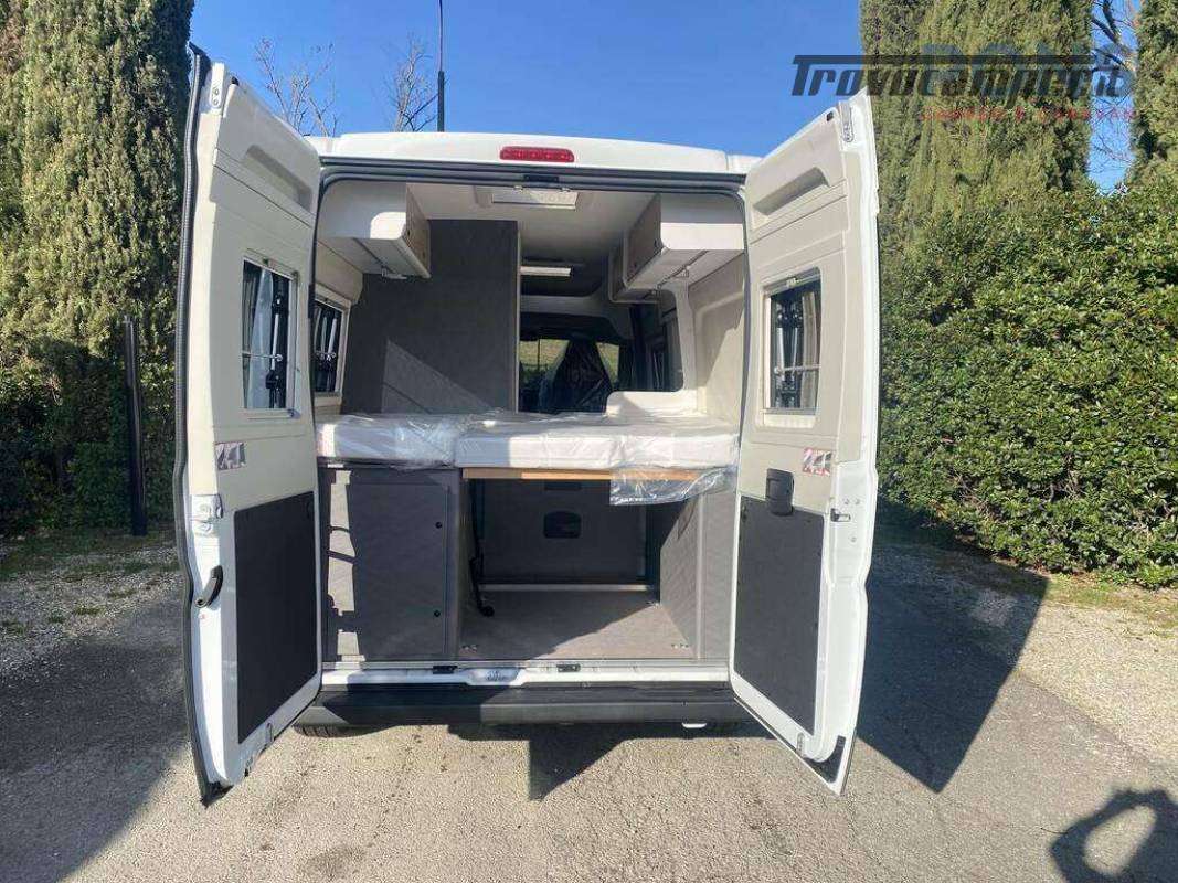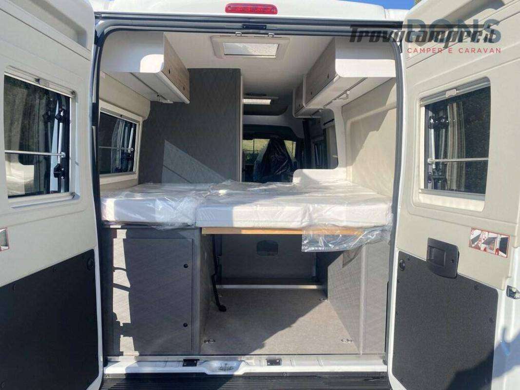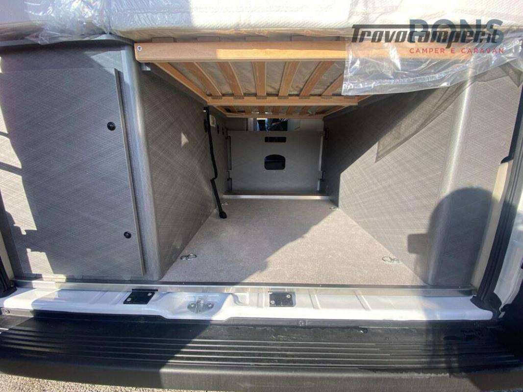 Nella parte posteriore è collocato il letto matrimoniale sotto al quale è possibile stivare bagagli o attrezzature varie, mentre ai suoi piedi troviamo il vano bagno composto da toilette e doccia.