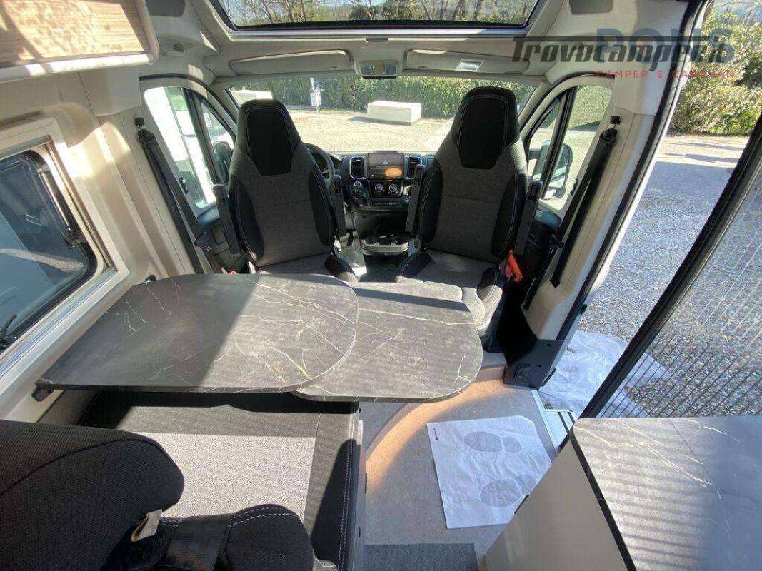 Quest'ultima super confortevole con sedili guida girevoli e tavolo con prolunga ruotabile, blocco cucina con piano cottura a due fuochi e frigorifero laterale a colonna con scomparto freezer.