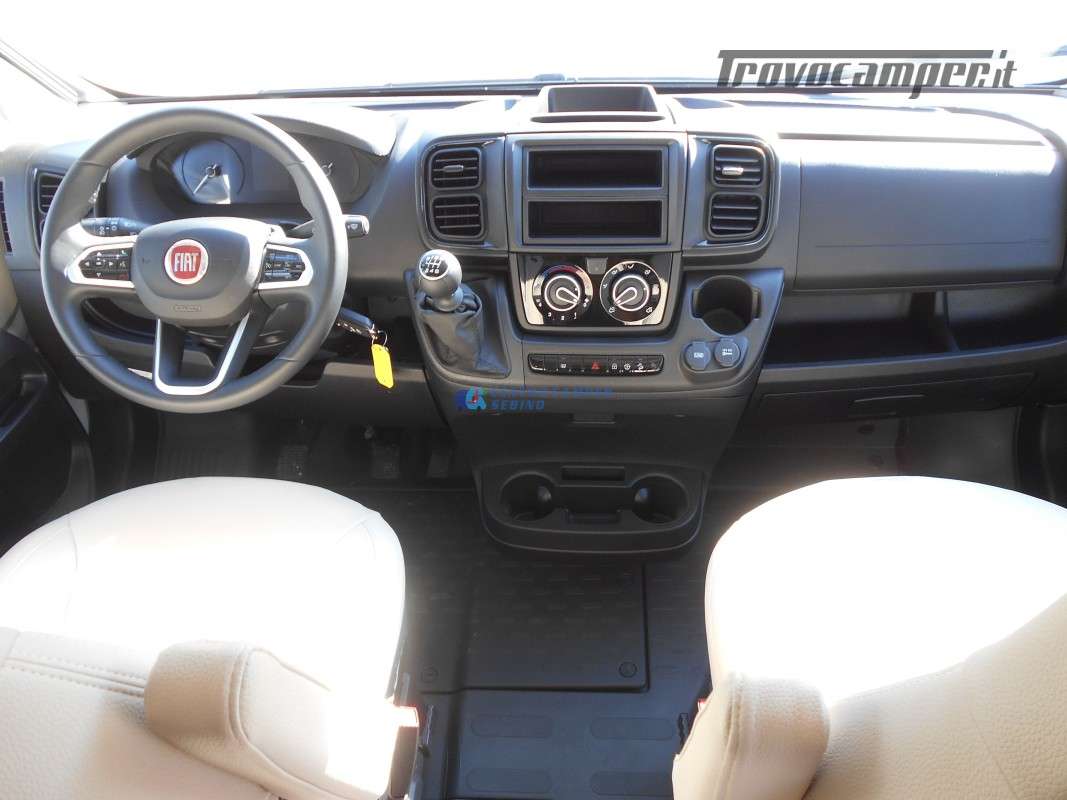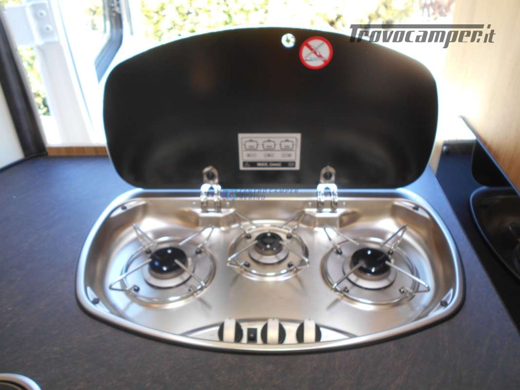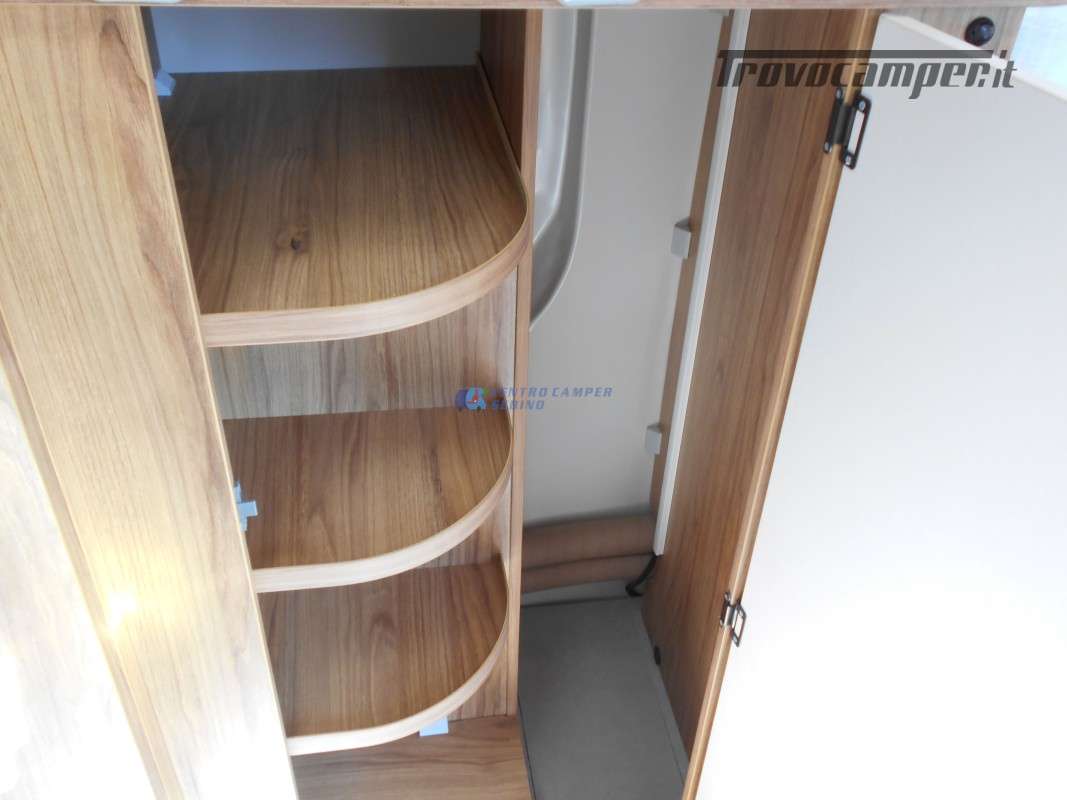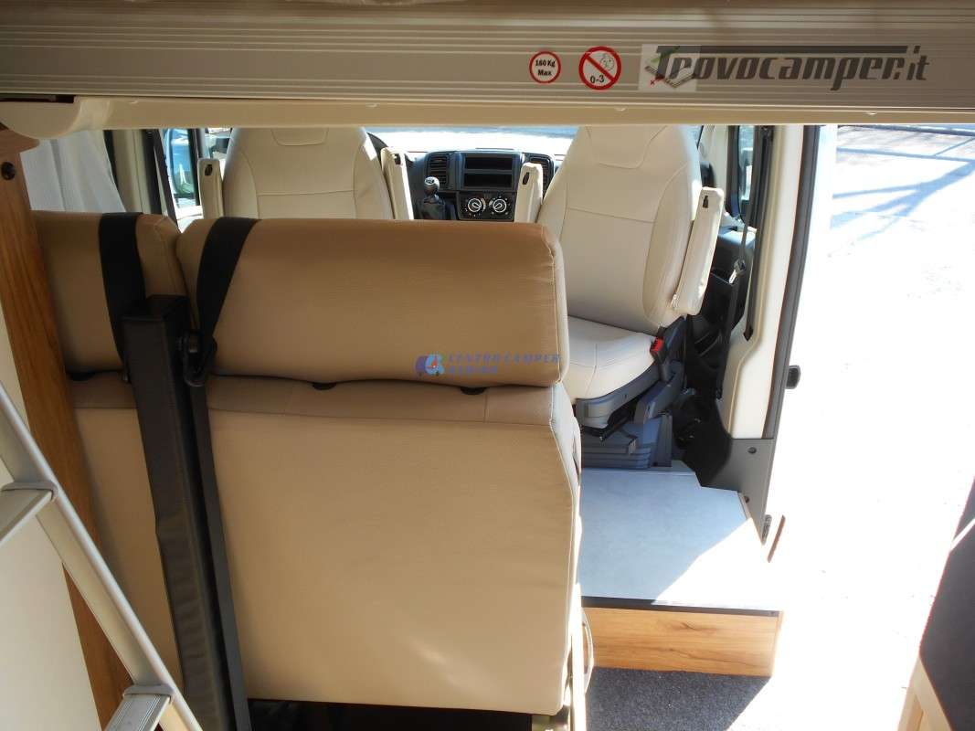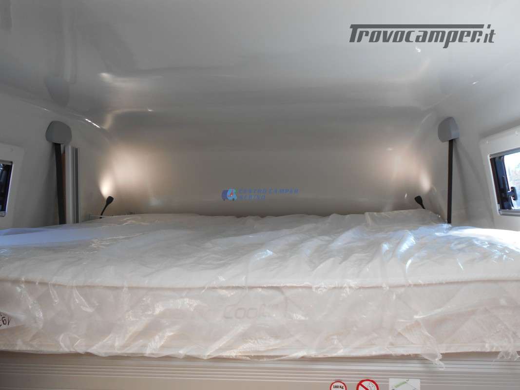 Posti letto: 4 (doppio letto matrimoniale: letto matrimoniale basculante elettrico anteriore 195 x 125 cm c.a. + letto matrimoniale ricavabile dalla dinette 190 x 122 cm c.a.)
