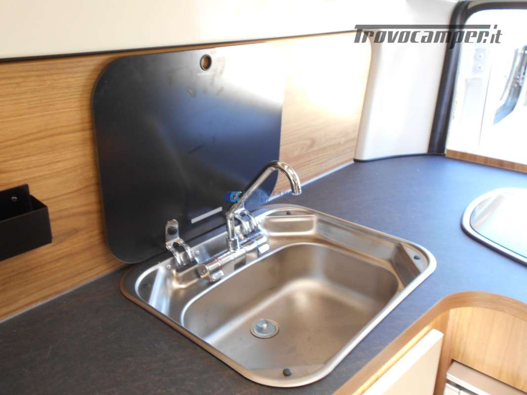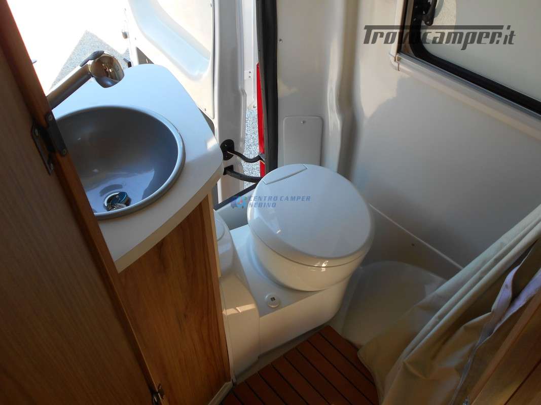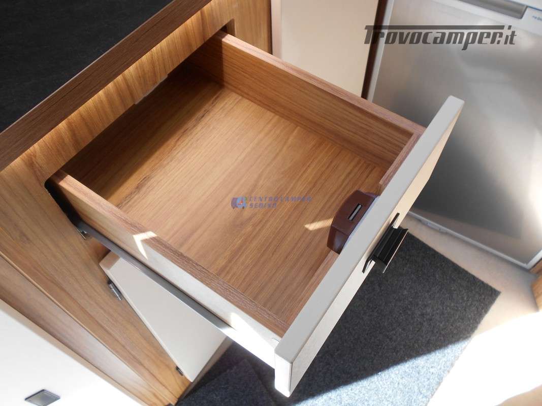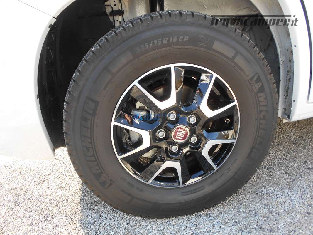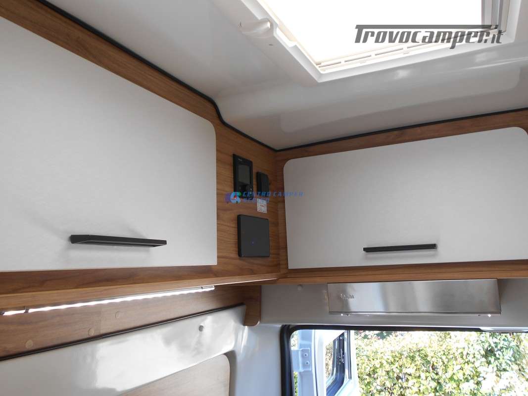 Posti letto: 4 (doppio letto matrimoniale: letto matrimoniale basculante elettrico anteriore 195 x 125 cm c.a. + letto matrimoniale ricavabile dalla dinette 190 x 122 cm c.a.)