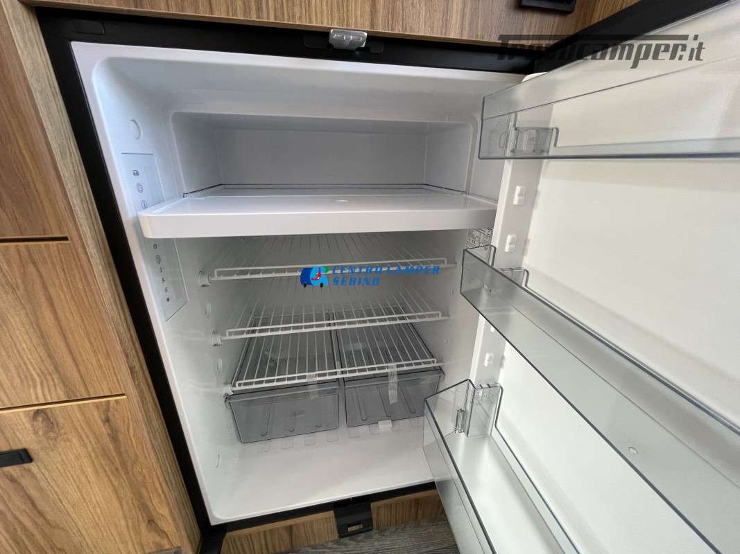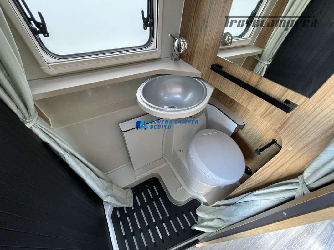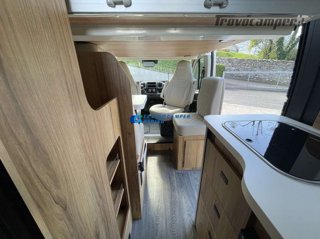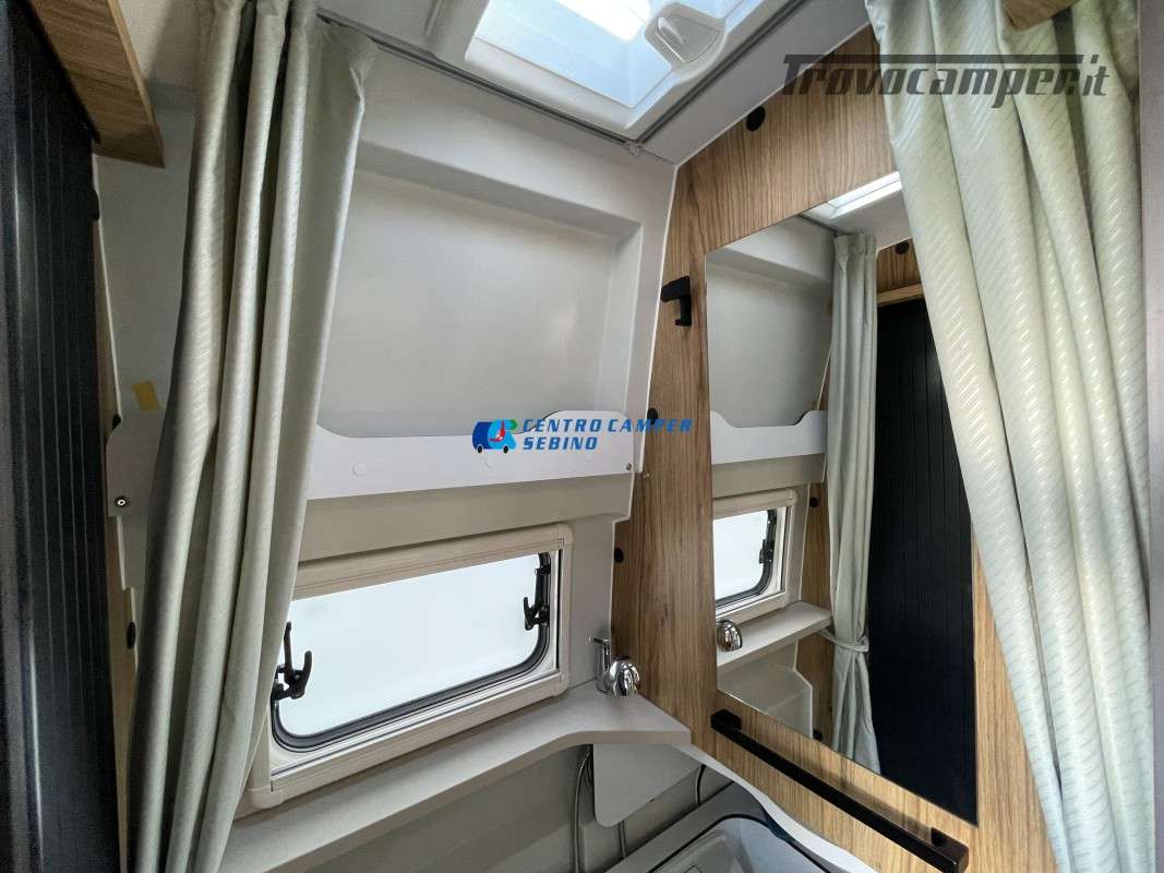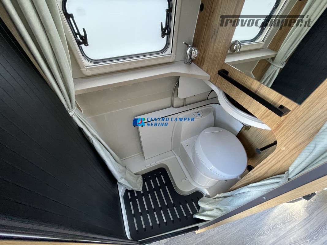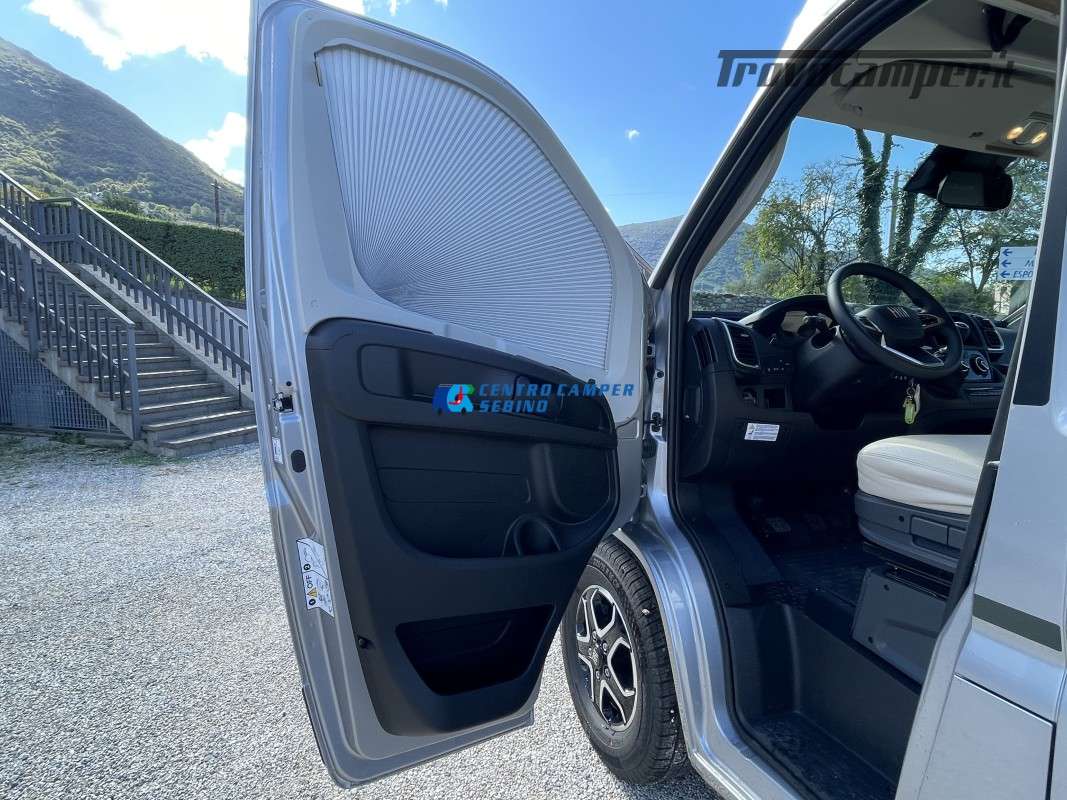 Posti letto 5 di cui 4 posti letto sempre pronti (doppio letto matrimoniale: letto matrimoniale trasversale posteriore 184x130/123 cm c.a. amovibile per aumentare il volume di carico del garage e letto matrimoniale basculante anteriore elettrico 197x132 cm c.a+ letto singolo aggiuntivo in dinette 184x99 cm c.a.)