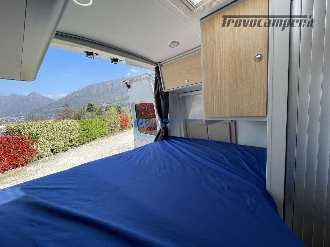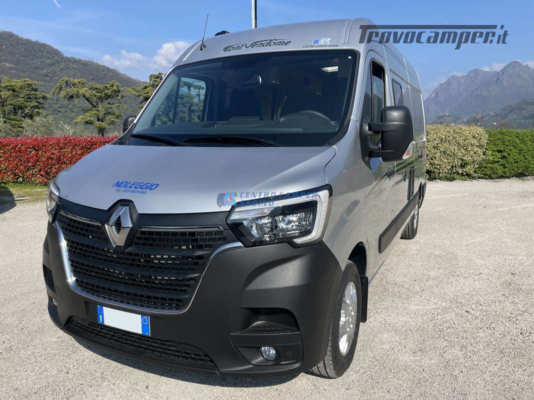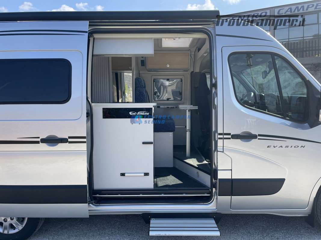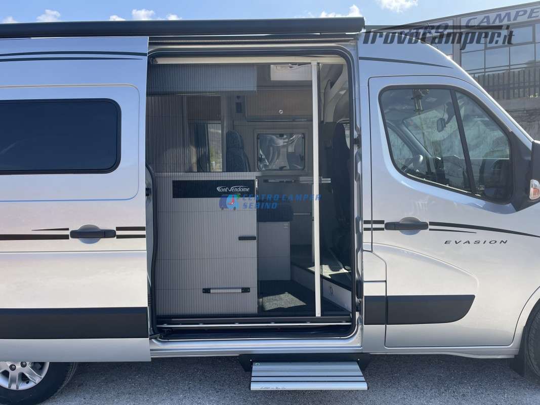 Font Vendôme Master Van XS Evasion, camper van puro furgonato compatto 3 posti, ampio gavone aumentabile togliendo la rete del letto, cucina lineare e bagno con doccia separata. Isolamento Premium.