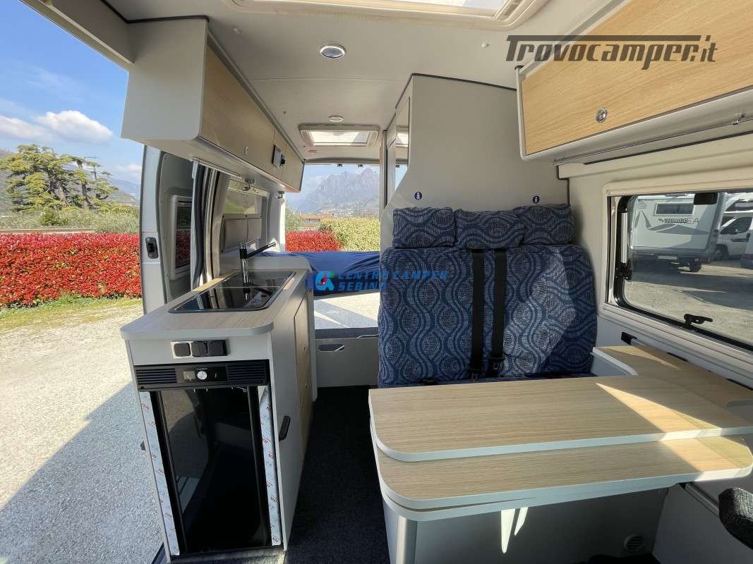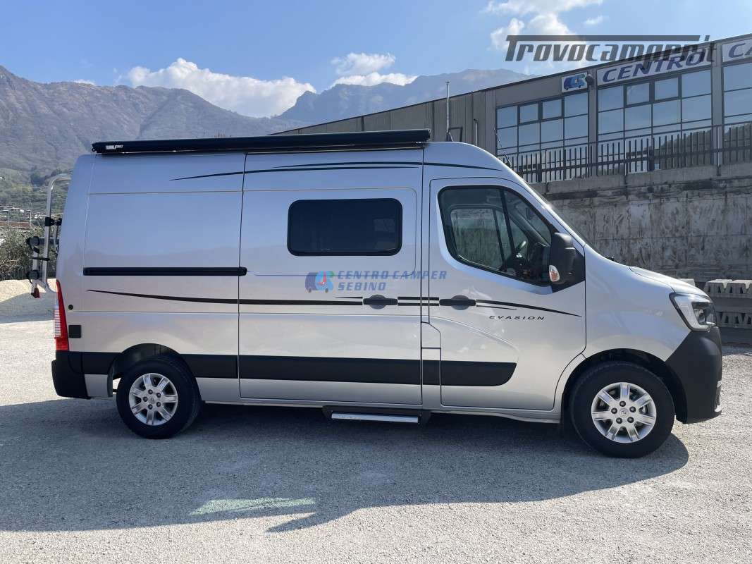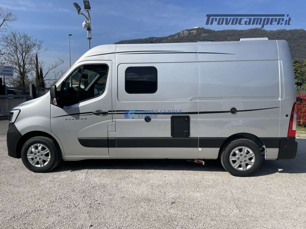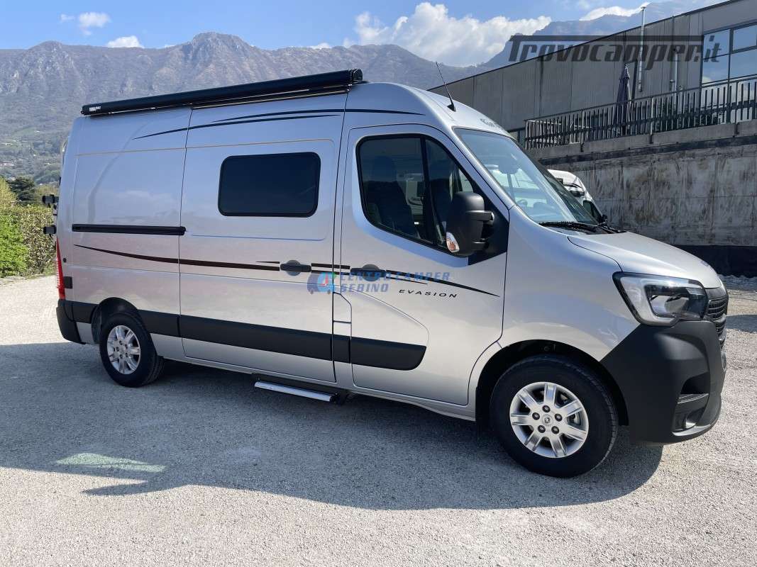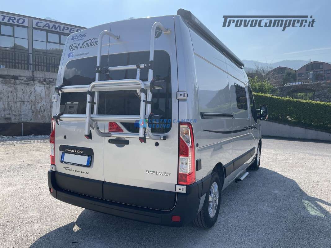 Font Vendôme Master Van XS Evasion, camper van puro furgonato compatto 3 posti, ampio gavone aumentabile togliendo la rete del letto, cucina lineare e bagno con doccia separata. Isolamento Premium.