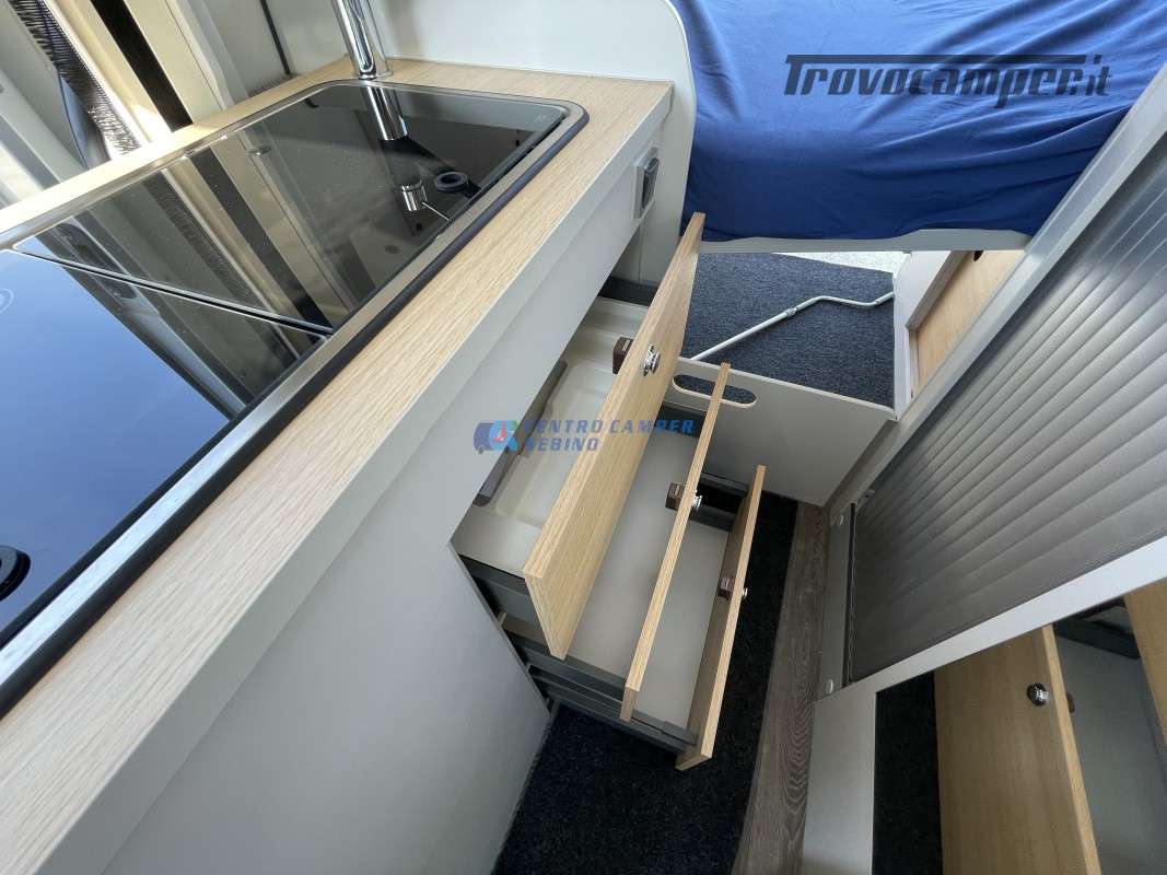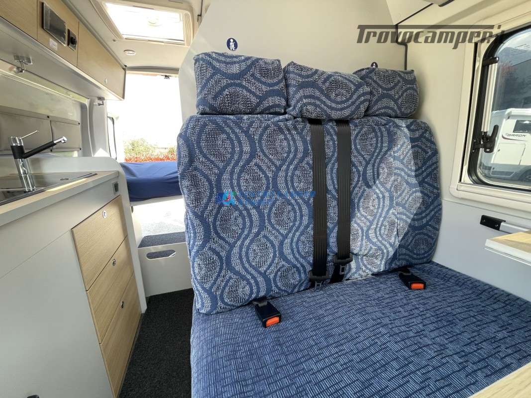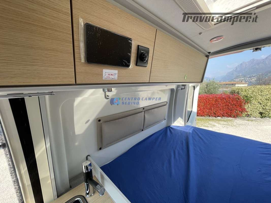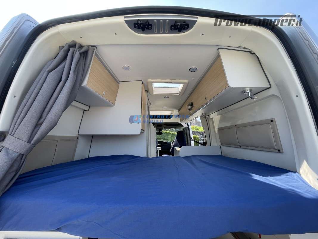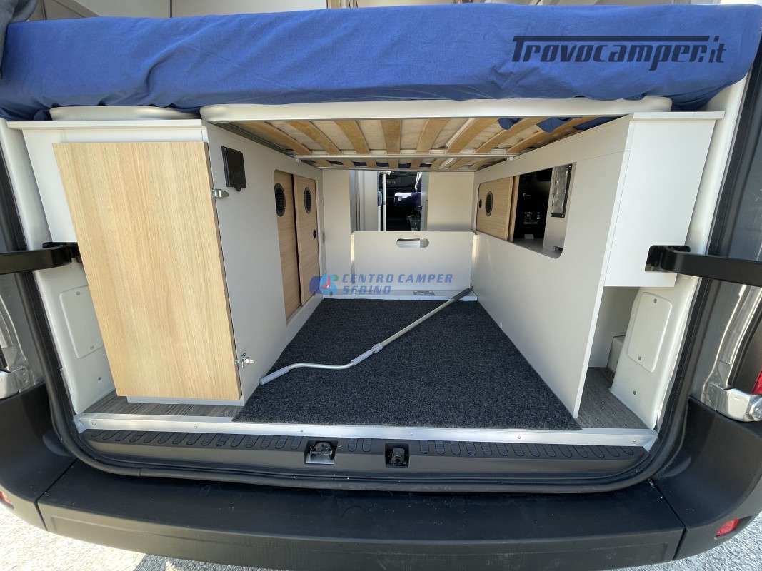 - Letto matrimoniale trasversale posteriore con rete a doghe removibile per aumentare il vano di carico: 191x136 cm c.a.