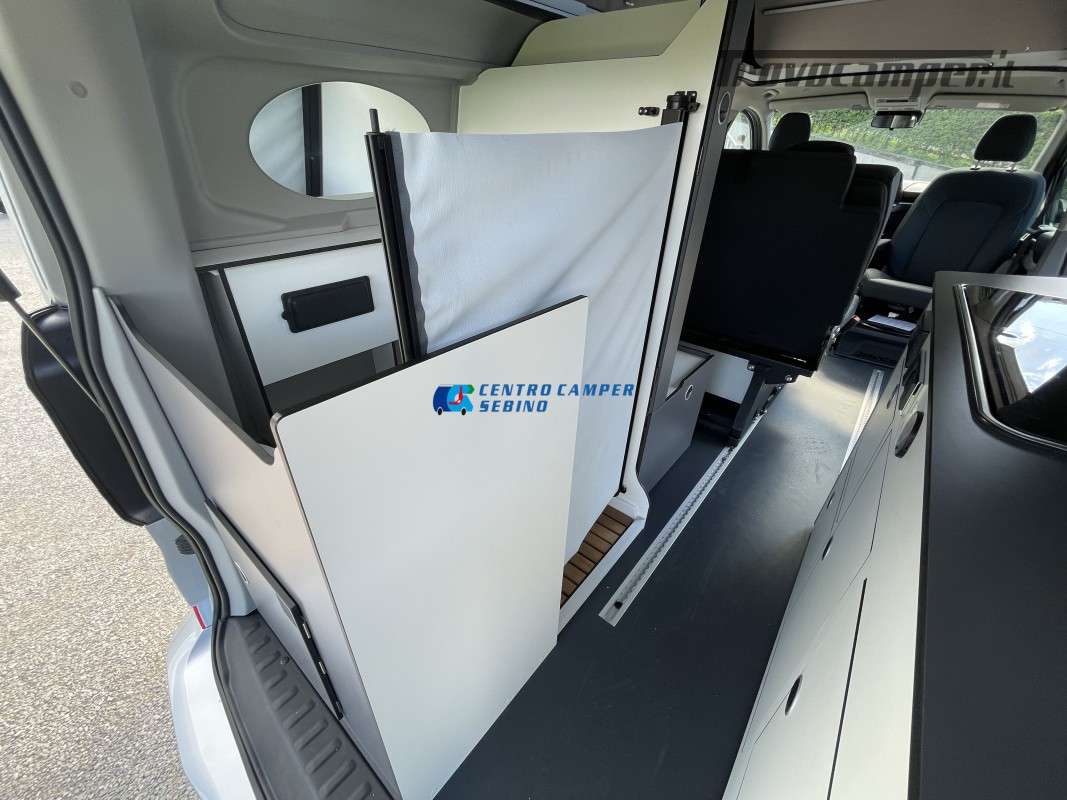 Sedile posteriore scorrevole a 2 posti omologati, trasformabile in letto (dimensioni c.a. 189x960 cm)