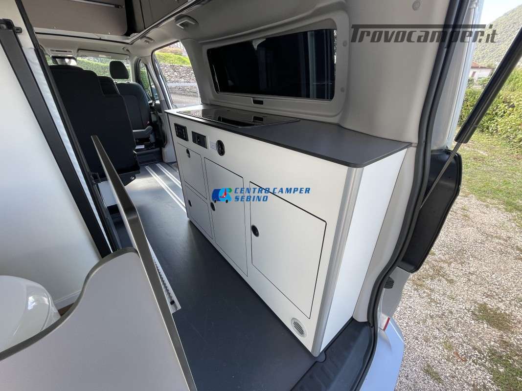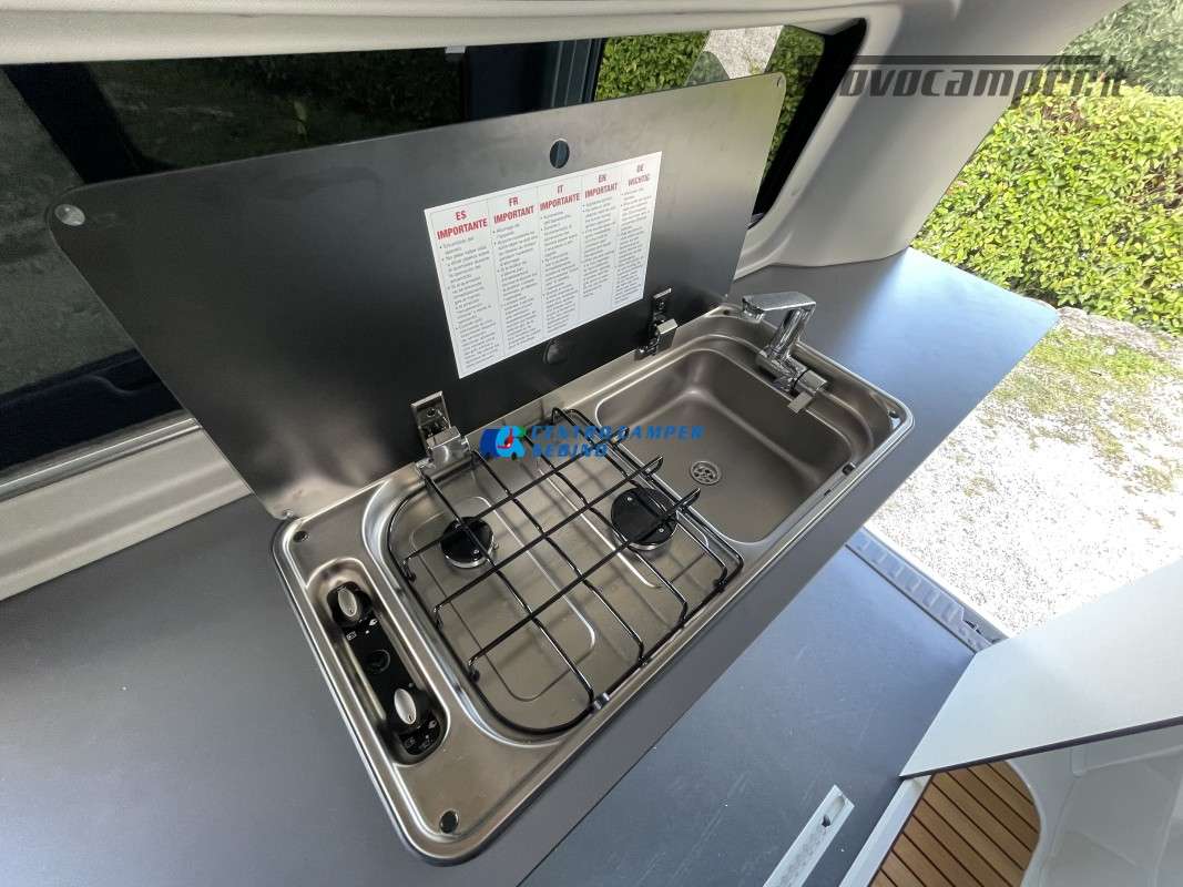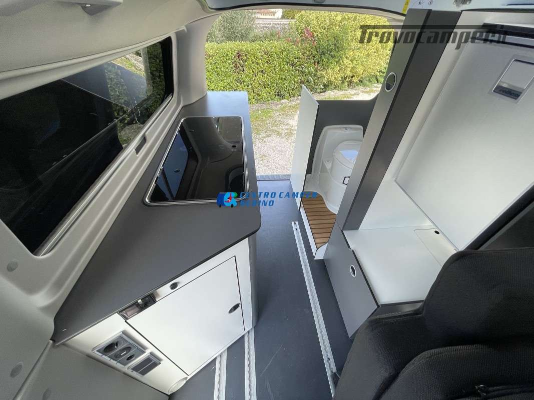 Font Vendôme XCAPE 90 mini van (urban vehicle) 5,44 mt 170cv cambio automatico con 4 posti viaggio omologati e 3 posti letto, cucina con piano cottura a 2 fuochi ad accensione elettrica e lavello in acciaio inox separato, riscaldamento DIESEL 2000w (ambiente + boiler), doppia apertura portiere (stile automotive: portellone scorrevole lato autista e lato passeggero) e box bagno con wc fisso.