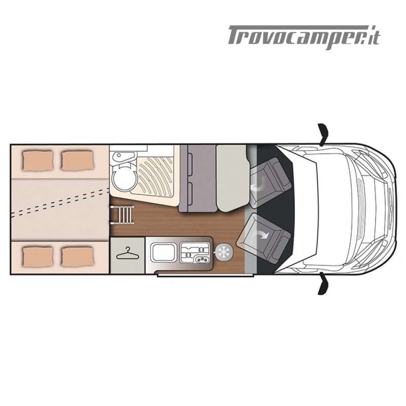 Furgonato McLouis 4 posti letto e viaggio con due comodi matrimoniali longitudinali a castello in coda, sulla magnifica nuova meccanica fiat ducato 2,2mjt 140cv,