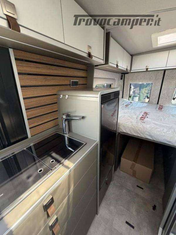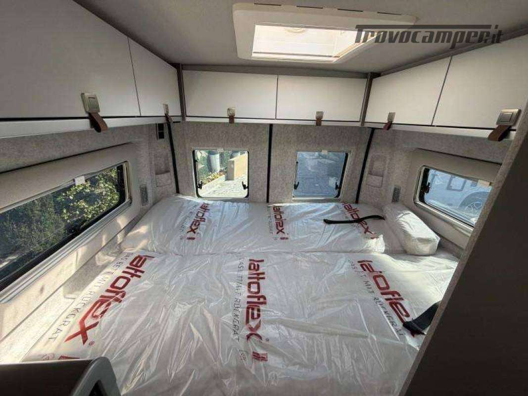 - Riscaldamento ad aria calda diesel da 6 KW con boiler da 10 l, resistenza elettrica da 1.800 Watt, sensore di pressione dell'aria (kit altitudine) e vano gas compatto per bombola da 6 kg, oltre a 3 cassetti portaoggetti.