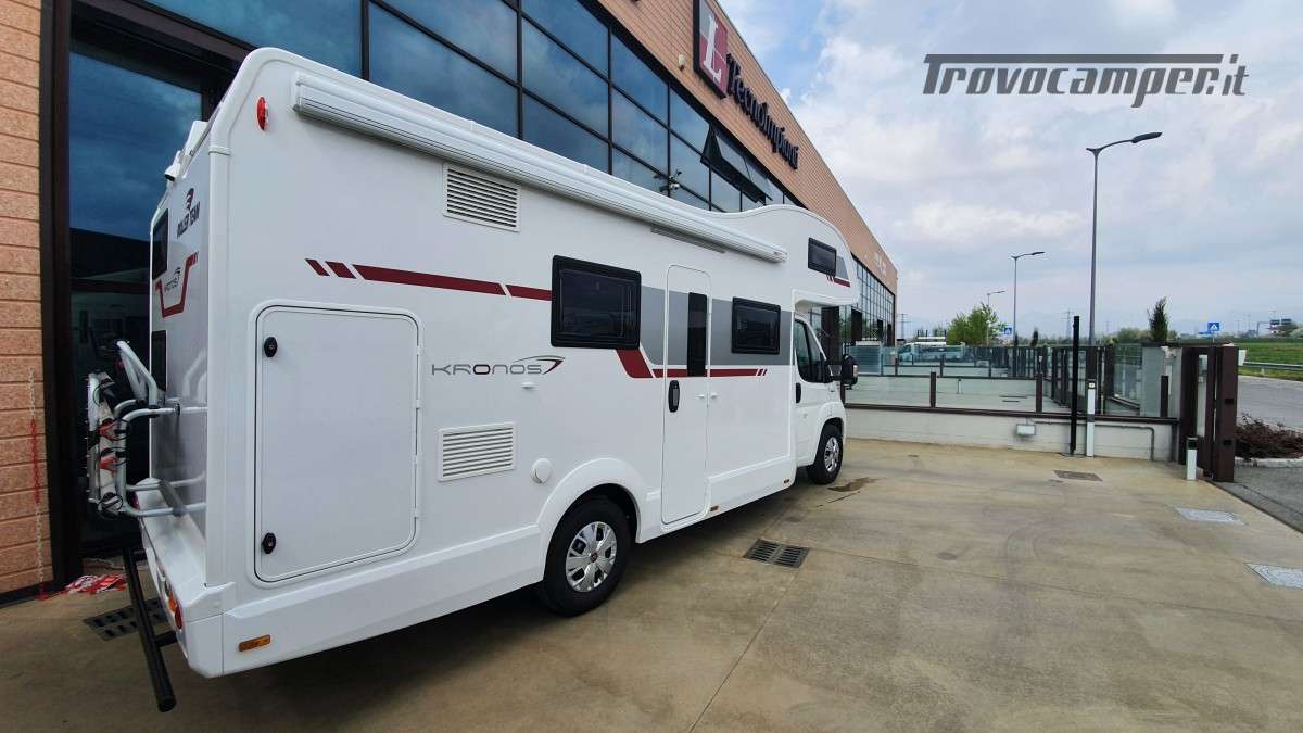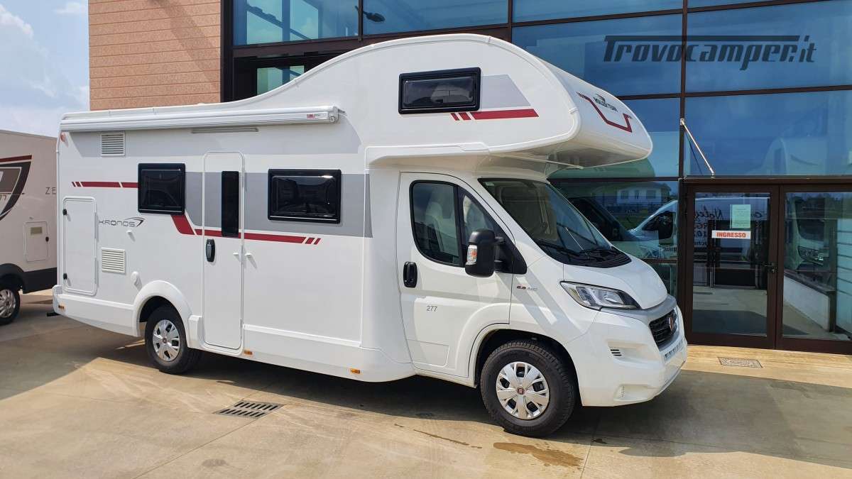 Proponiamo questo Kronos 277 del 2021. Un mansardato progettato specificatamente per equipaggi numerosi con soluzioni abitative innovative e spazi ottimizzati per famiglie con bambini.