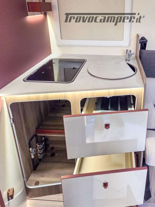 Il Kronos Fit 230 TL è una soluzione ideale per famiglie e gruppi, grazie ai suoi 4 posti omologati e 4 posti letto ben distribuiti. Le sue dimensioni ottimizzate (639 cm di lunghezza, 215 cm di larghezza e 285 cm di altezza) lo rendono facile da guidare quanto un furgonato, pur offrendo il comfort e gli spazi di un camper profilato.
