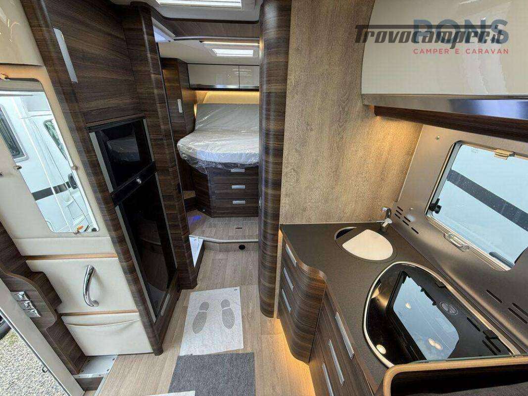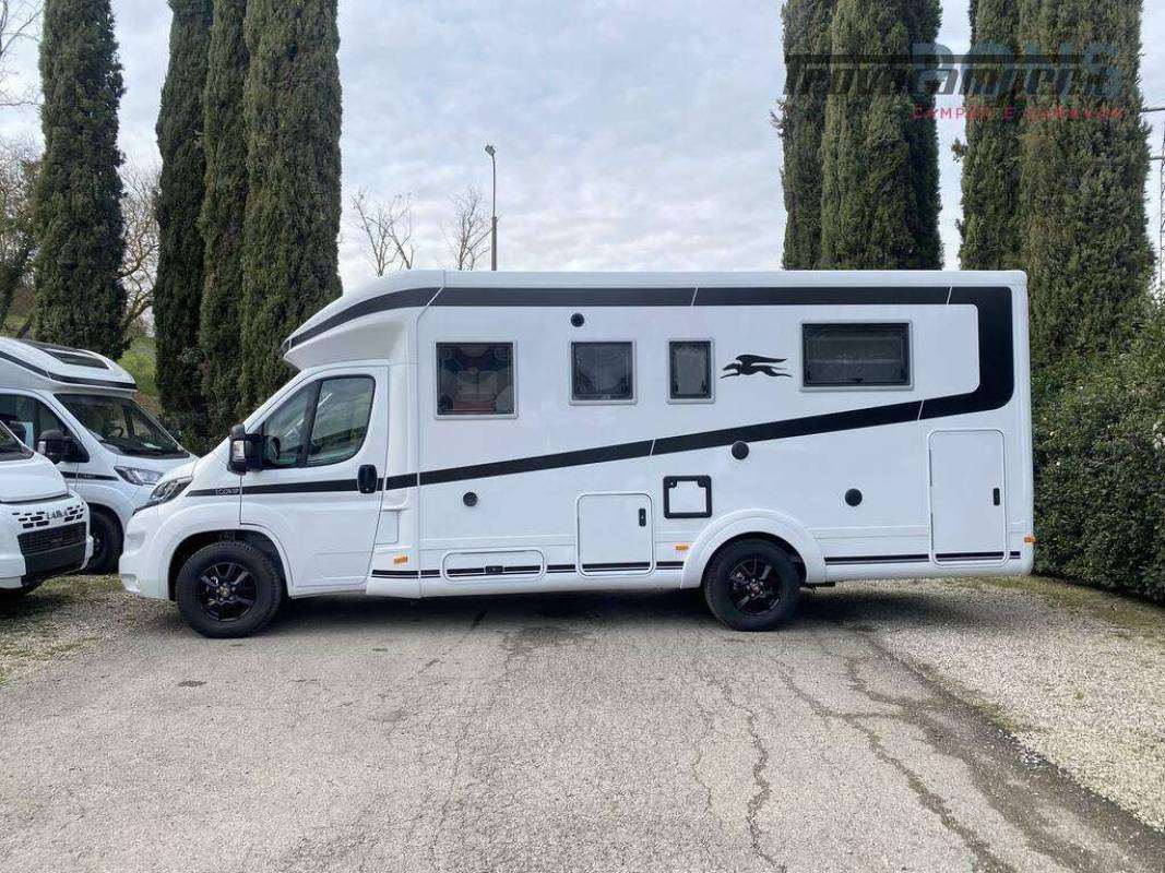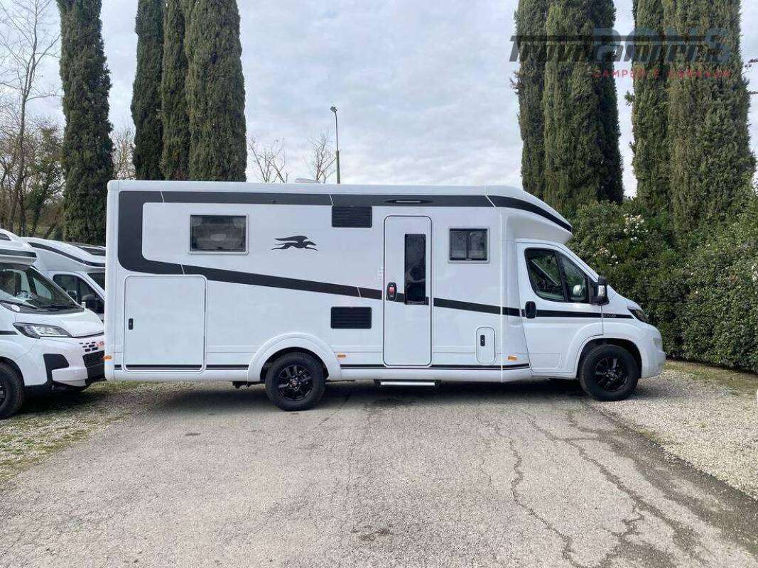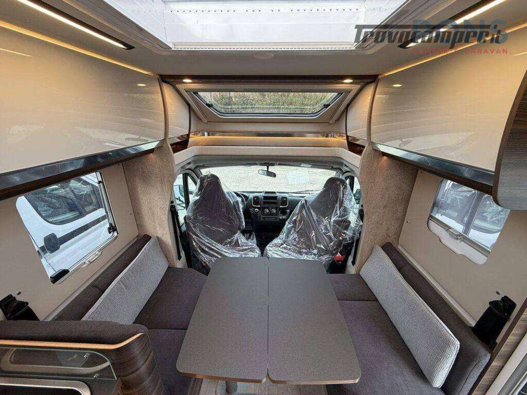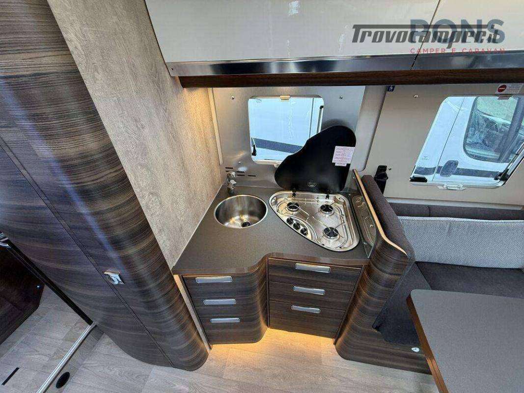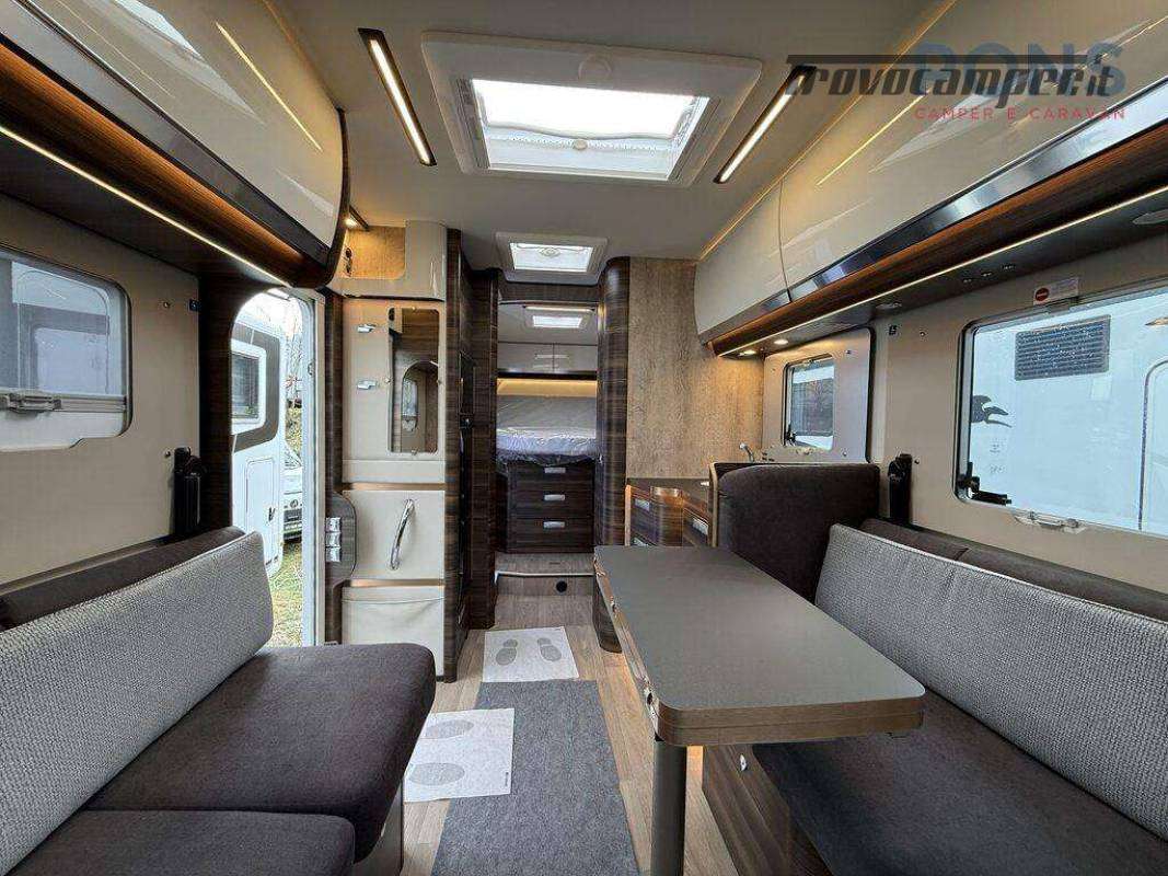 Nella sua lunghezza di 7,40 mt questo bellissimo veicolo offre una luminosa zona giorno grazie al maxi oblò panoramico; dinette face-to-face dotata di un tavolo traslabile con chiusura a libro, sedili cabina girevoli e numerosi pensili per lo stivaggio.