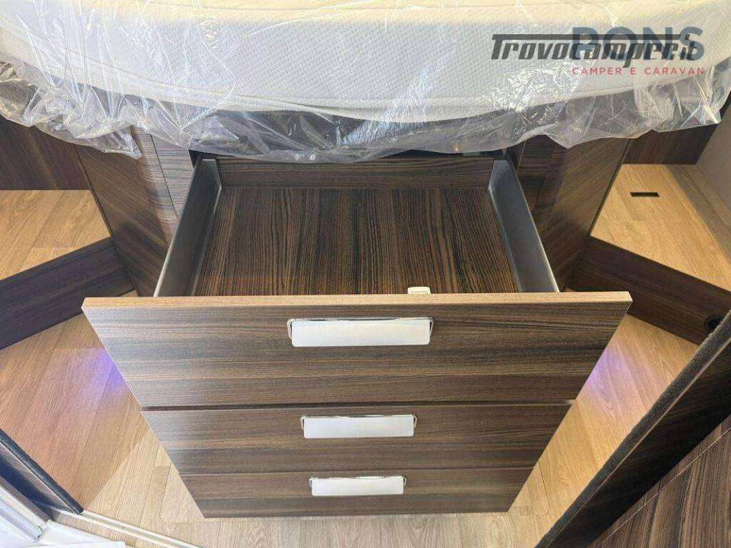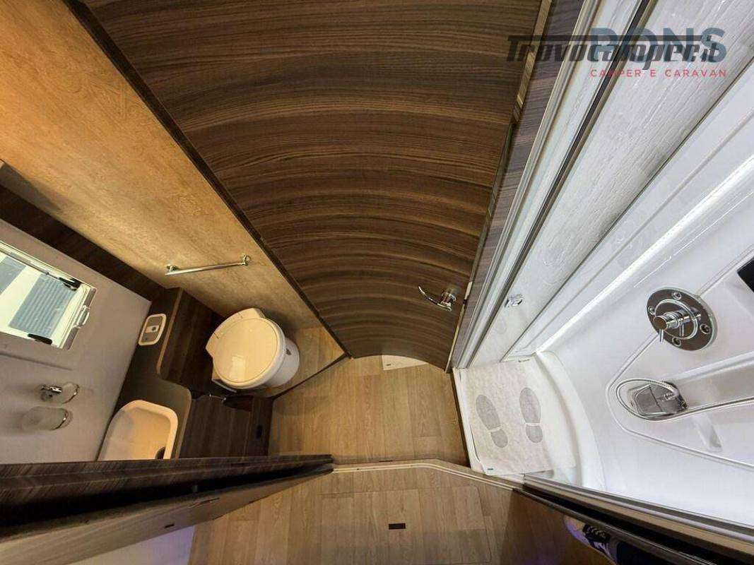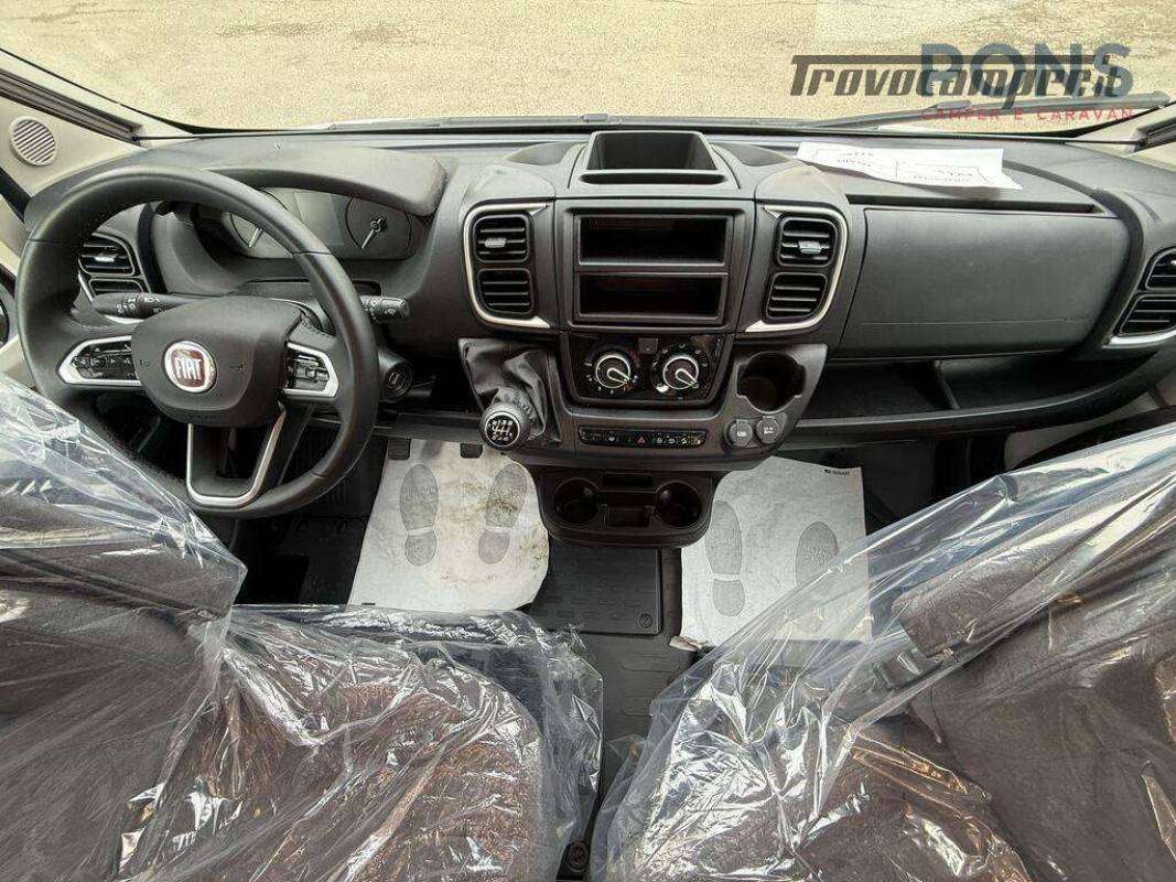 - Pacchetto Comfort moquette cabina guida, Finestra bagno, Oscuranti interni plissettati in cabina, Pedana in legno per piatto doccia, Predisposizione telecamera di retromarcia
