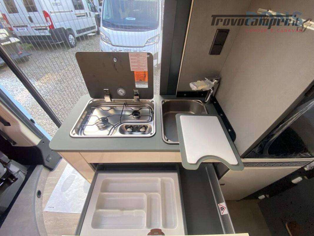Nella sua lunghezza di soli 5,99 mt ospita un arredamento elegante e distintivo grazie alla nuova colorazione della tappezzeria.