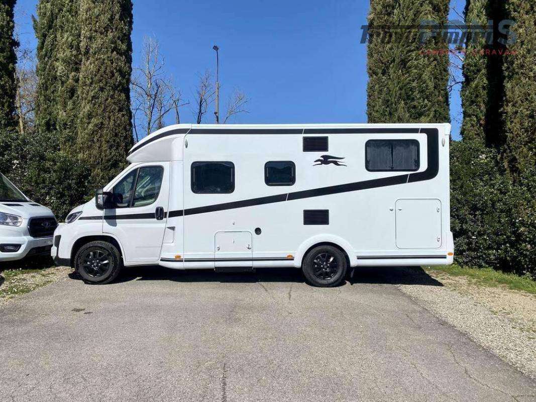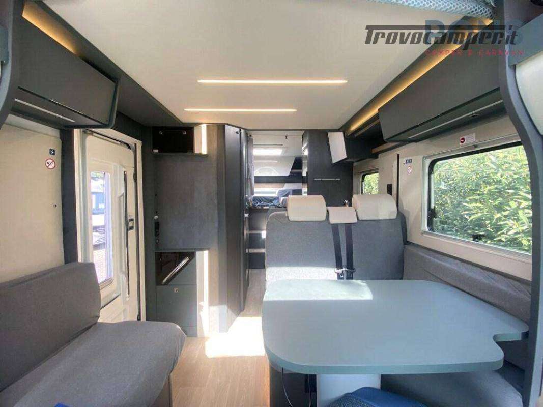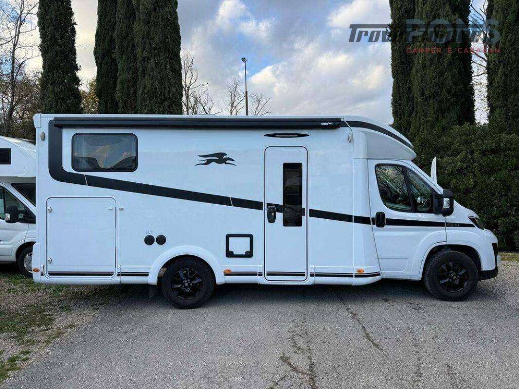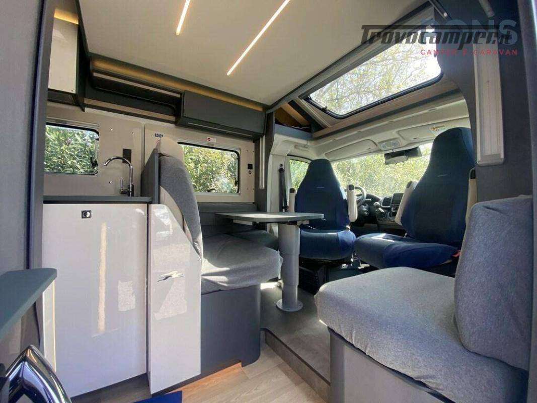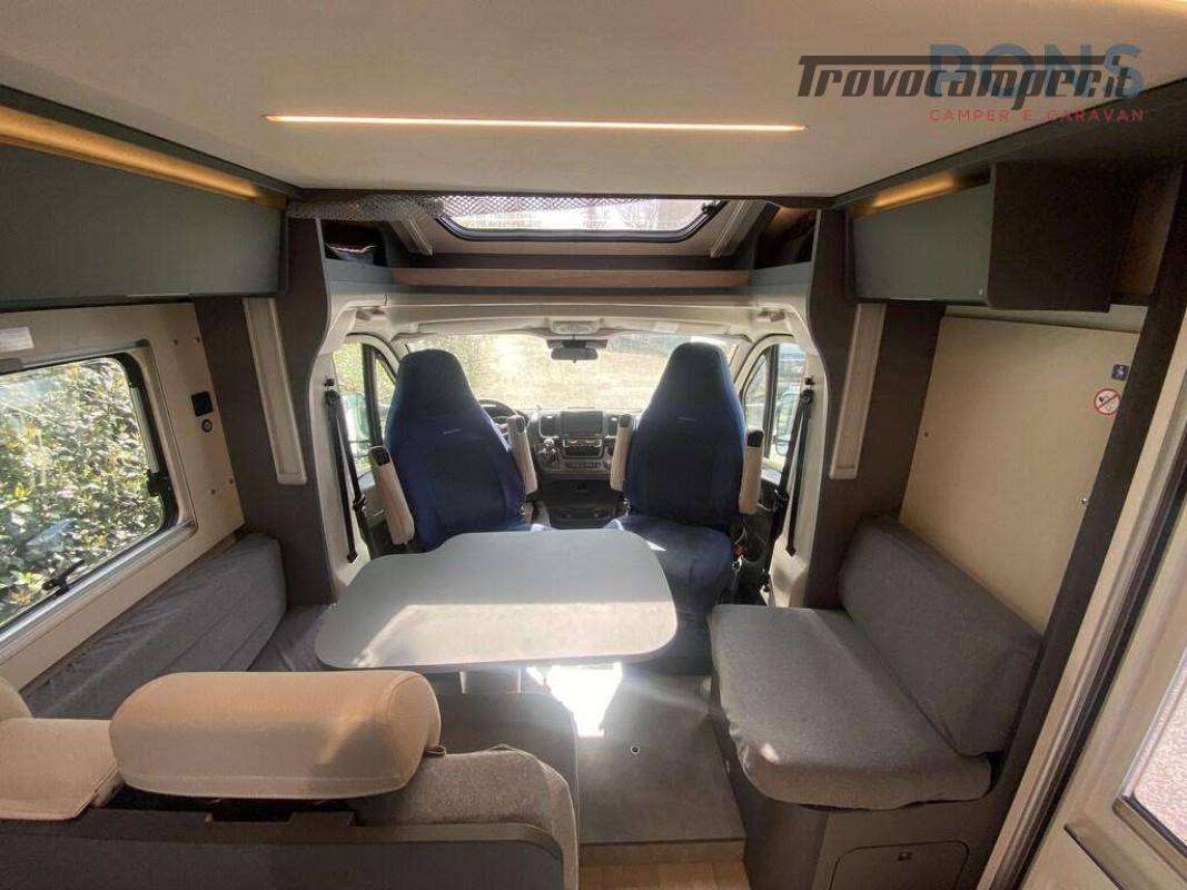 Nella sua lunghezza sotto i 7 mt questo bellissimo veicolo offre una luminosa zona giorno grazie al maxi oblò panoramico; dinette dotata di un tavolo ergonomico con piano traslabile anti-graffio e anti impronte, sedili cabina girevoli, numerosi pensili per lo stivaggio e un vano porta-scarpe all?ingresso.
