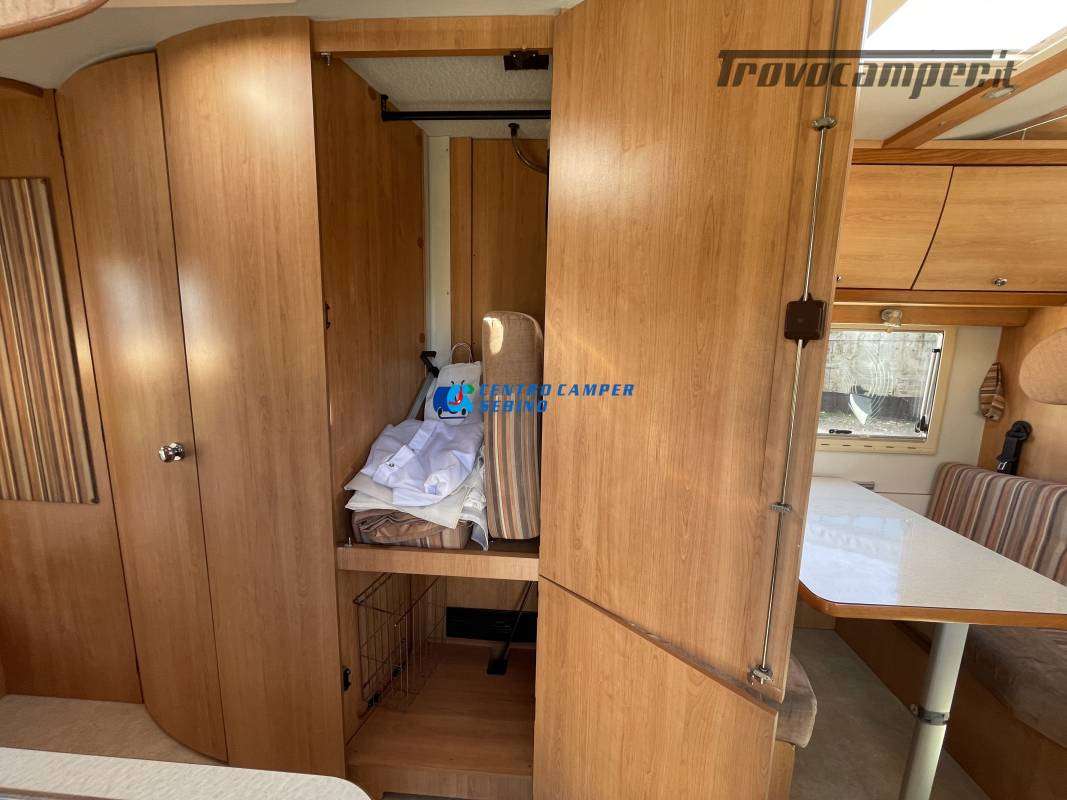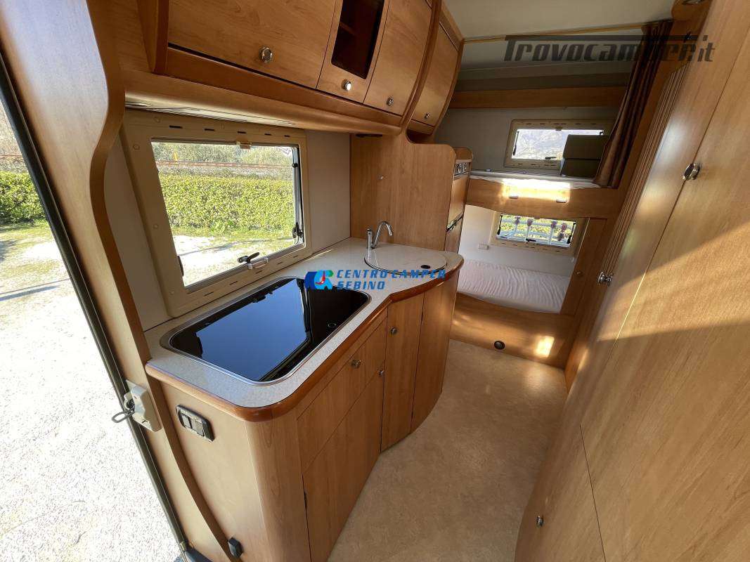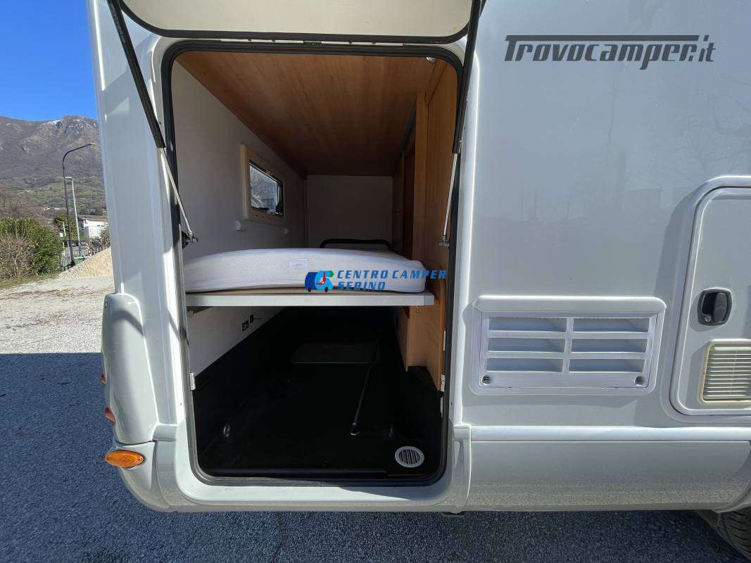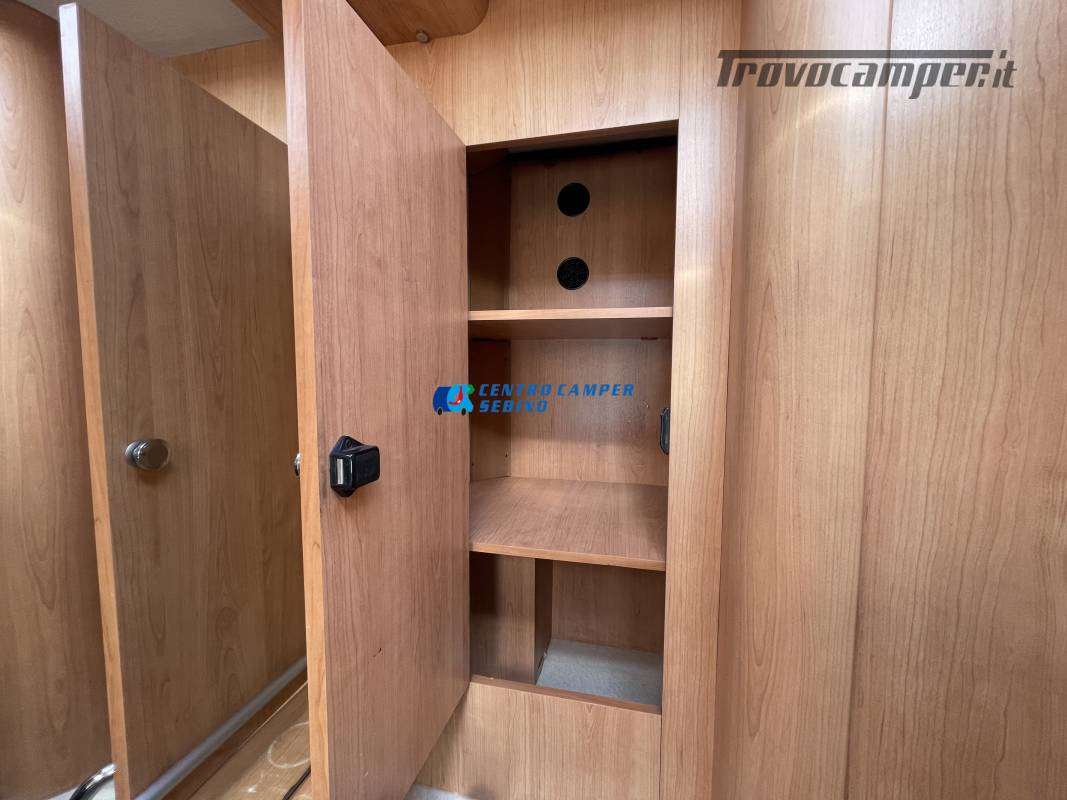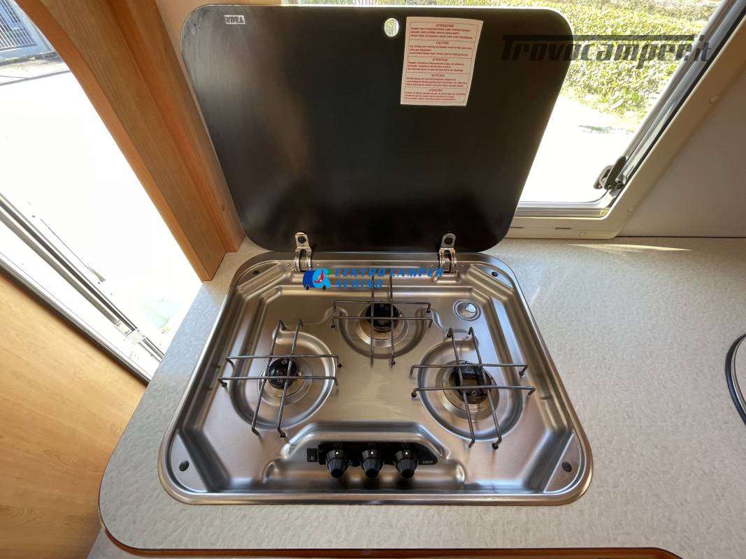 Disposizione interna con ampia mansarda finestrata, grande zona giorno con doppio tavolino e con due grandi finestroni contrapposti per una maggiore luminosità (uno dei due con apertura scorrevole, apribile anche durante il viaggio) e che può diventare una zona letto aggiuntiva, corridoio spazioso, cucina lineare con piano cottura a 3 fuochi e lavello dotato di coprilavello, frigorifero grande con freezer separato, tanti armadietti e grande armadio capiente, comodi letti a castello trasversali posteriori (quello inferiore può essere alzato per aumentare il vano di carico) e bagno con doccia separata!