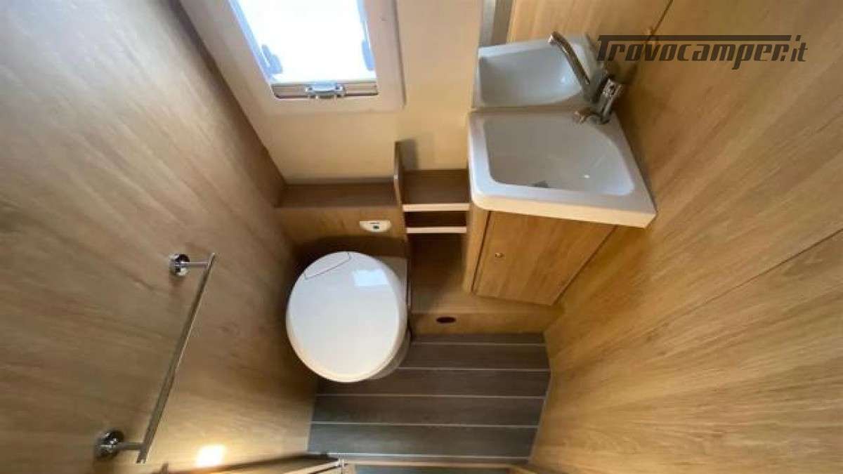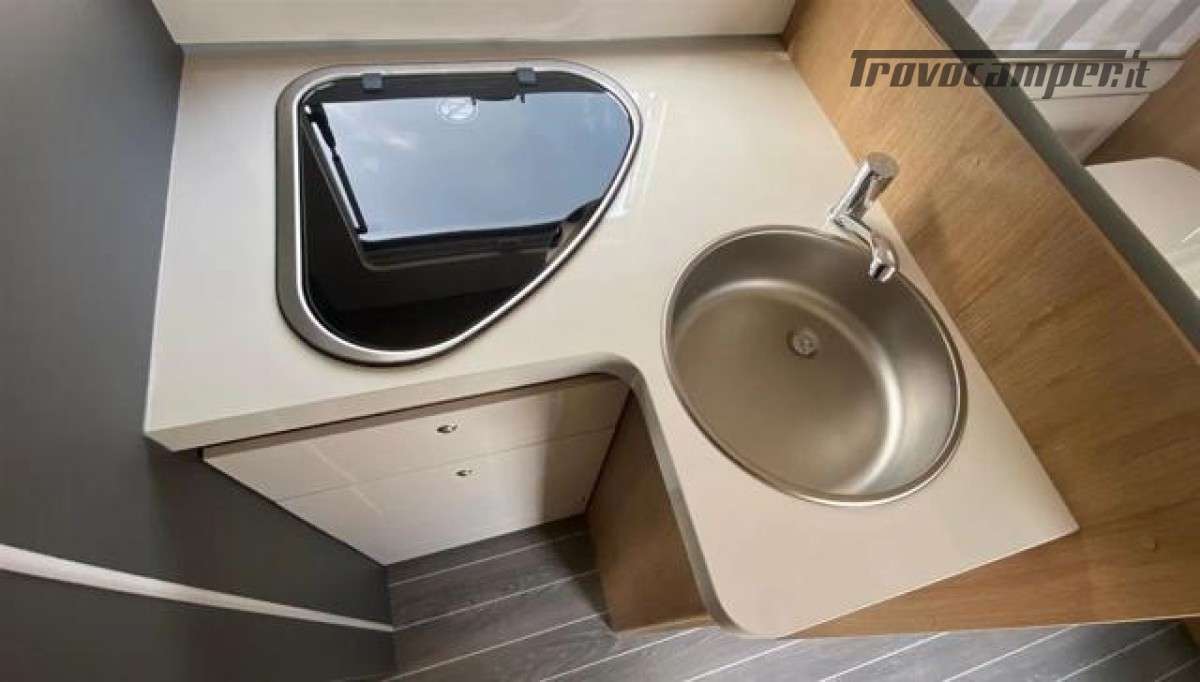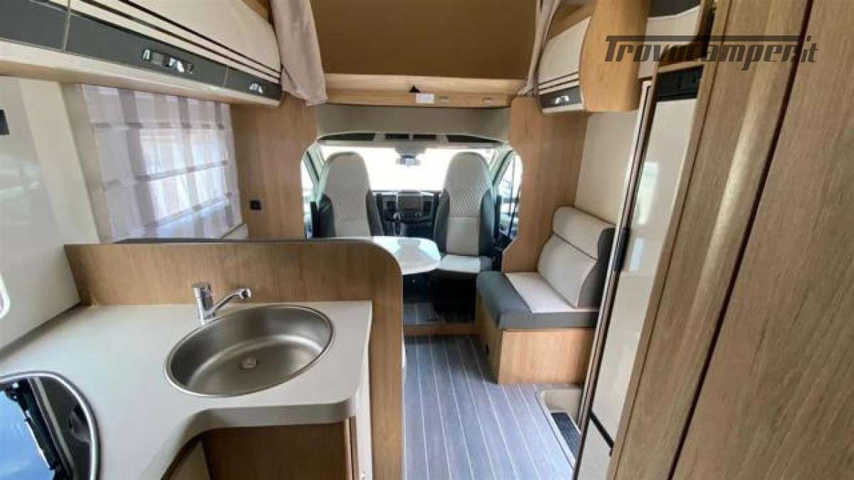 Accessori di serie: quinto posto omologato, tetto in vetroresina antigrandine, volante e pomello cambio in pelle, climatizzatore manuale cabina, airbag guidatore e passeggero, cruise control con limitatore di velocità, sedili cabina girevoli, fari fendinebbia, vano per due bombole, piatto doccia con doppio scarico, gradino di entrata integrato e isolato, gavone garage riscaldato, oblò posteriore, oblò dinette, oscurante cabina plissettato.