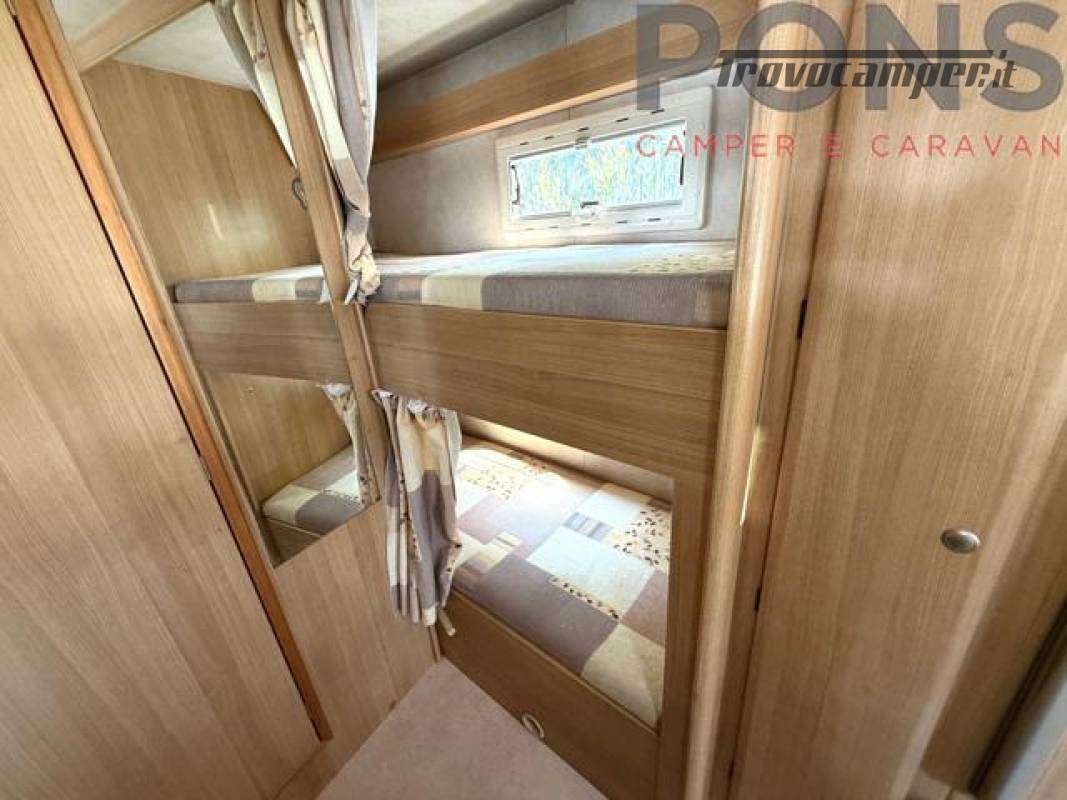 Letti a castello posteriori longitudinali sul lato sinistro, ideali per bambini o ospiti, con accesso facilitato e spazio indipendente.