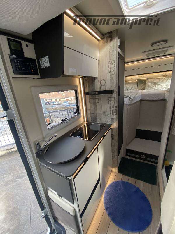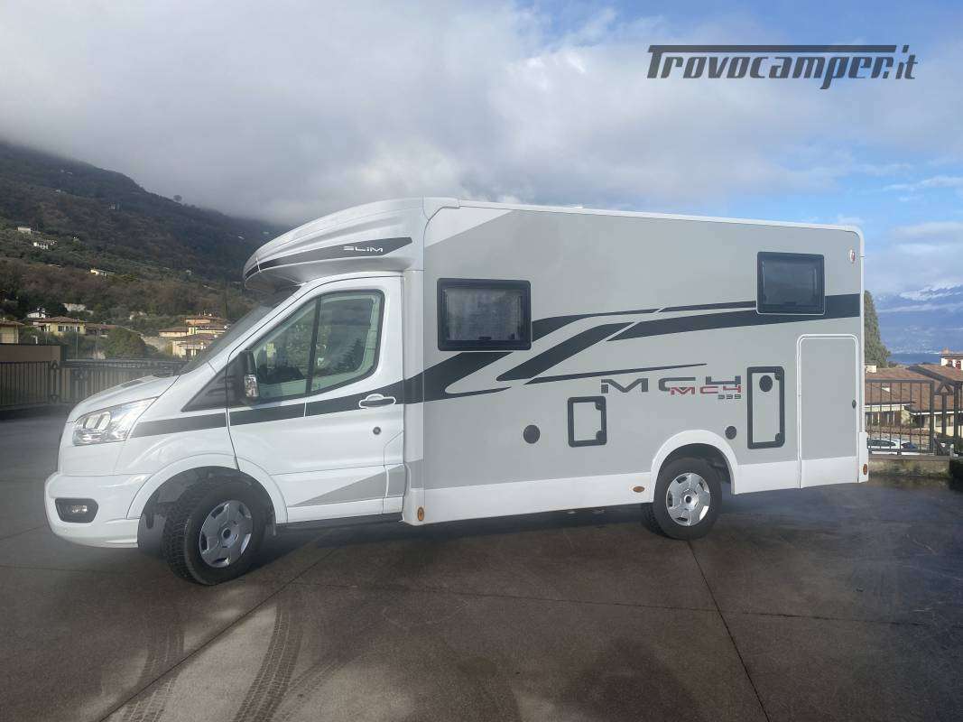 Camper Slim (2,15 m), maneggevole come un furgonato ma con spazi e comfort da vero semintegrale, ideale sia per viaggi lunghi sia per uso in coppia o famiglia.