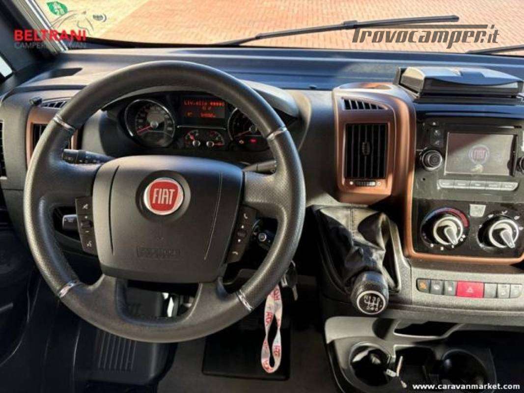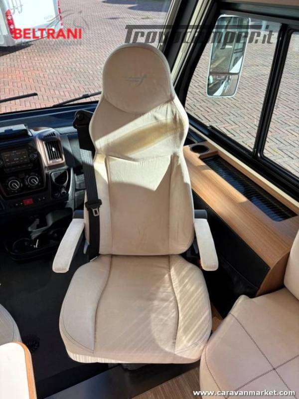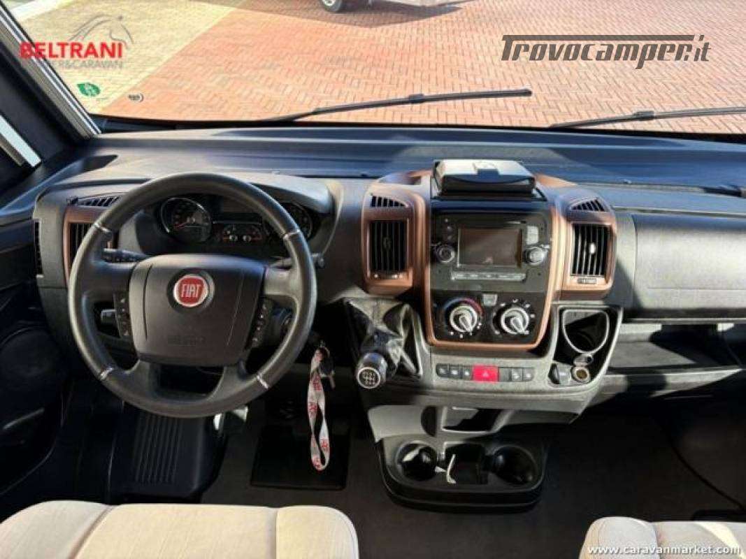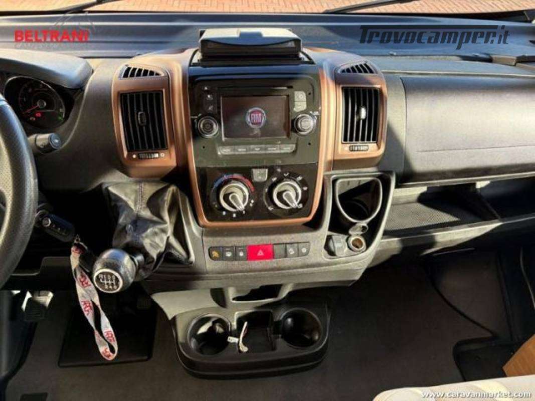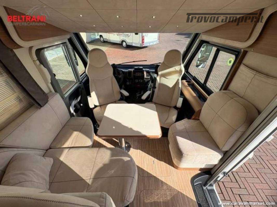 telaio rinforzato AL-KO, offre 4 posti letto grazie al letto matrimoniale trasversale posteriore king size e al letto basculante sopra la zona living.È dotato di doppio pavimento termoisolato E garage laterale capientea.
