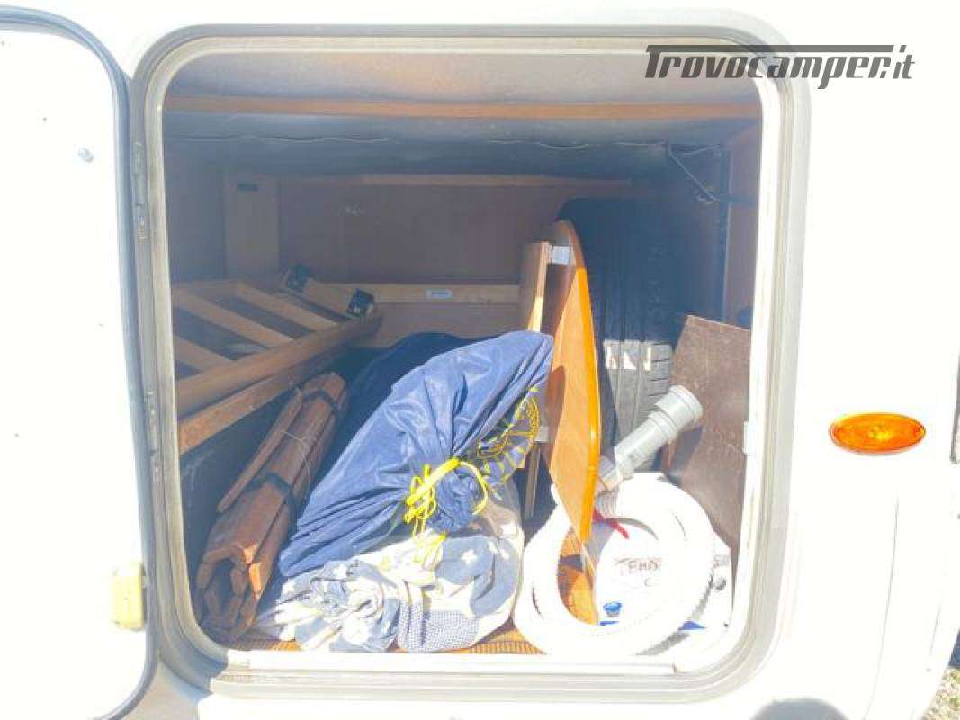letto alla francese longitudinale posteriore con vano garage sottostante, perfetto per stivare tutto l'occorrente.