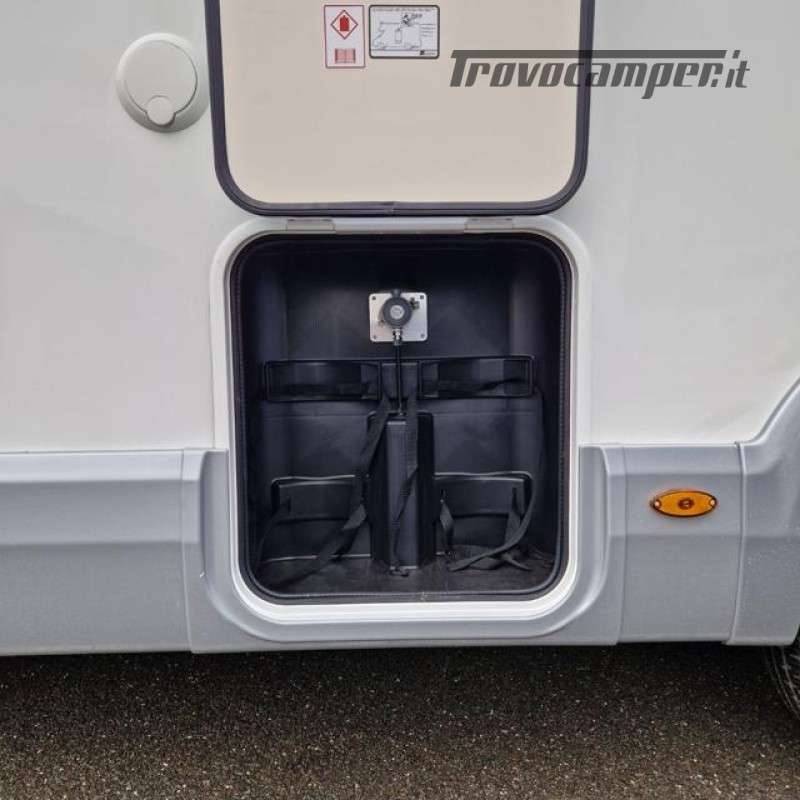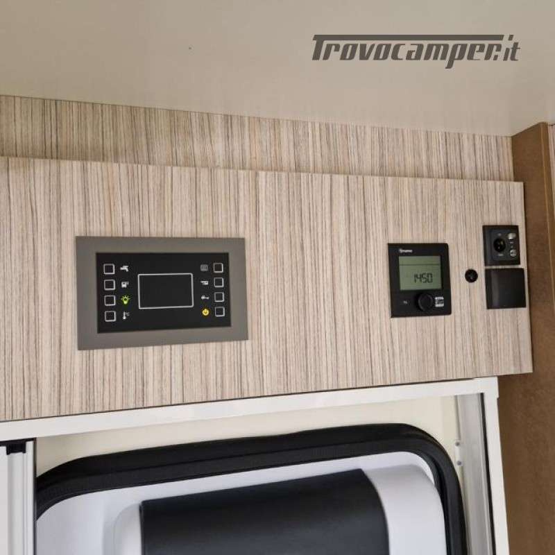 Tendalino Fiamma, Truma Duo Control, Sospensioni ad aria con compressore, climatizzatore a tetto, antenna satellitare automatica Teleco, Smart TV 32", seconda batteria servizi AGM, Battery Dual System 180, Inverter 2000W onda pura.