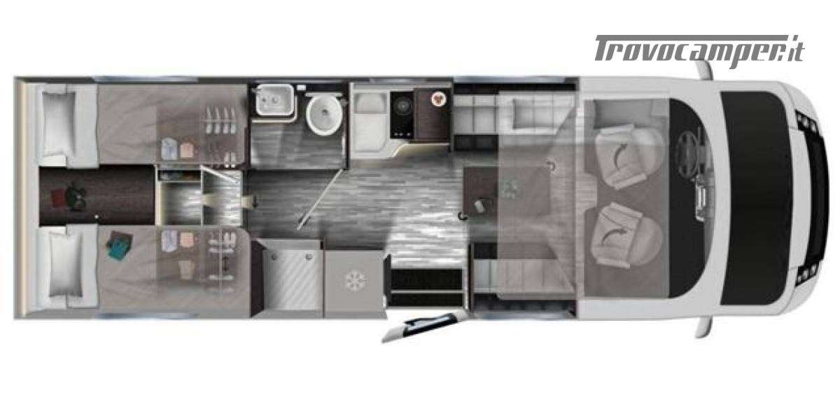 Mobilvetta K?Yacht Tekno Line 86 ? 2026 | Automatico. Motorhome premium con design automobilistico e linea aerodinamica, pensato per chi cerca comfort vero su lunghi viaggi. In circa 7,5 m offre un grande living face?to?face con tetto panoramico, cucina centrale completa e servizi con doccia separata, mentre in coda i letti gemelli su garage garantiscono spazio, privacy e praticità. Il cambio automatico su base Fiat Ducato 2.2 rende la guida fluida e silenziosa; a bordo illuminazione full LED, climatizzazione e riscaldamento efficienti assicurano benessere tutto l?anno. Ampi vani di stivaggio, porta cellula premium e finiture morbide al tatto completano un allestimento elegante e funzionale, ideale per coppie esigenti o famiglie che desiderano viaggiare con stile, tecnologia e massima abitabilità