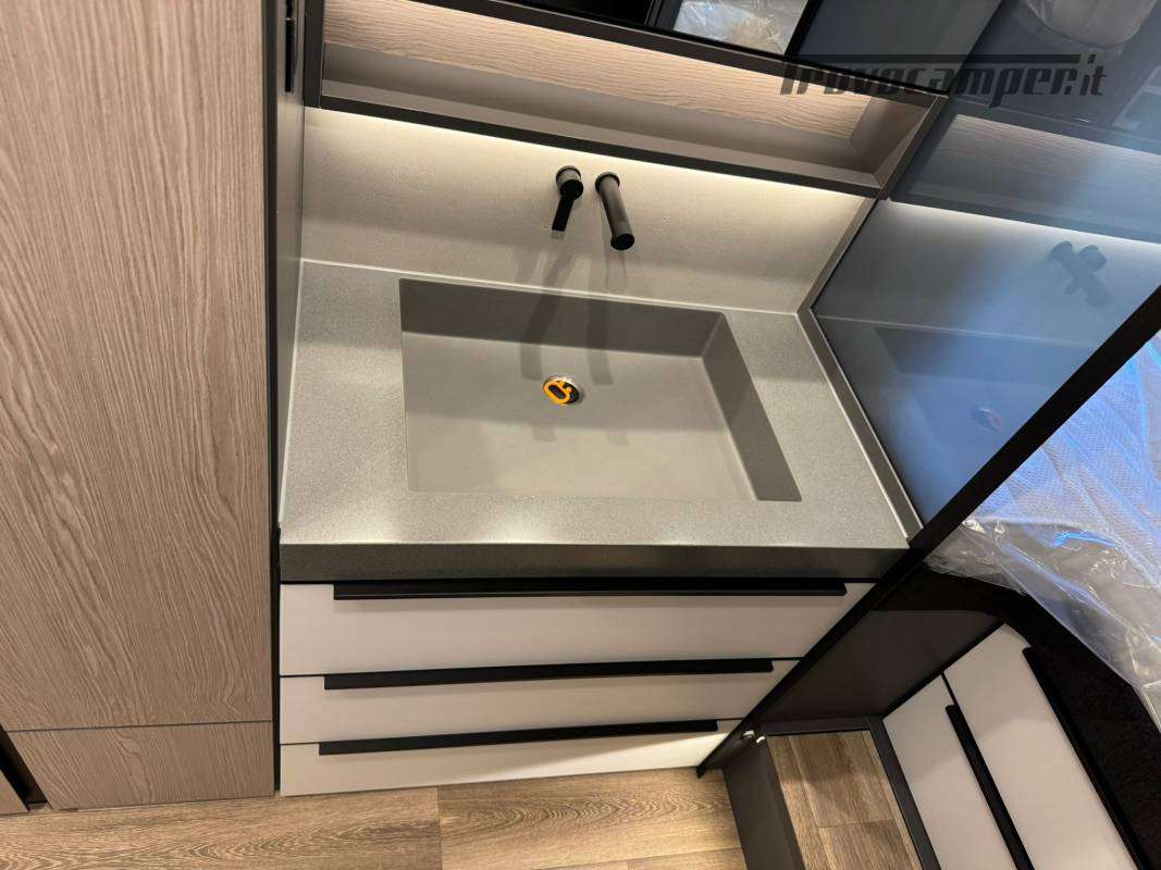 - Cristallo divisorio tra lavandino e letti post. oscurabile elettricamente