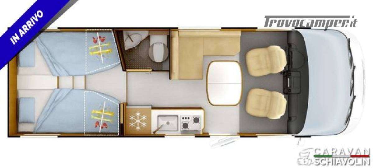 Cambio Automatico ? 3.050,00PACK SELECT in offerta a soli ? 1.990,00 anzichè ? 4.110,00 (Telecamera di retromarcia con monitor di controllo integrato al cruscotto, Stazione multimediale DAB PIONEER® con schermo 6,8" e funzioni APPLE CARPLAY / ANDROID AUTO, Pneumatici all season 3PMSF, Traction+ con Hill Descent Control (assistenza al mantenimento della velocità costante in discesa), Tendina parabrezza isotermica scorrevole, a doppio plissé: alto/basso (parasole), Porta cellula con serratura a 2 punti con finestra fissa e pattumiera integrata, Zanzariera porta cellula, 2a chiave telecomandata (PLIP), 2a batteria cellula AGM 92 Ah) DI SERIE PACK ENERGY (Pannello solare 150 W montato in fabbrica,?Batteria al litio 100 Ah,)DI SERIE PACK SMART (Cerchi in lega leggera 16" (+ 4,5 cm di altezza del veicolo), Volante e pomello del cambio comfort, Rivestimento grigio alluminio su bocchetta di aerazione, Comandi radio al volante (solo integrali)) ALTRE CARATTERISTICHE DI SERIE NELLA SERIE 65° = Cerchi 16" in lega leggera bicolor, Freno di stazionamento elettrico, Volante comfort, Rivestimento grigio sugli aeratori, Stazione multimediale DAB PIONEER® con grande schermo 9" touch screen e funzioni APPLE CARPLAY / ANDROID AUTO, Batteria al litio, Pannello solare (montato in fabbrica), Serbatoio acque grigie riscaldato, Selleria edizione speciale ricamata «65 anni» INOLTRE La Serie Edizione Speciale 65o Anniversario si distingue per un design e una decorazione esterna esclusivi, con un logo creato appositamente per festeggiare questo evento e la camera è dotata di una testata del letto retroilluminata, mentre la zona doccia è munita di una pratica pedana nera.PUNTI DI FORZA = Bagno DUO'SPACE per ottimizzare gli spazi, Pedana doccia nera, Letti gemelli (80 x 199 cm + 80 x 185 cm) trasformabili in letto trasversale, Guardaroba ai piedi dei letti facilmente accessibili, Porta di separazione notte rigida, Frigorifero a compressione 140 L, Piastra di cottura 2 fuochi inox goffrato con coperchi neri e accensione piezoelettrica, Salotto con divanetto a L, Salotto convertibile in posto letto supplementare 1 piazza, Tavolo a portafoglio, Gavone passante con vano in poliestere, Grandi sportelli del gavone a destra e a sinistra 100 x 75 cm CAMPER MOTORHOME COMPATTO SOLI 2,17 MT DI LARGHEZZA E SOLO 2.75 DI ALTEZZA, CON COMODI LETTI GEMELLI E GARAGE.NOVITA' 2026 IN ARRIVOFoto di repertorio .;