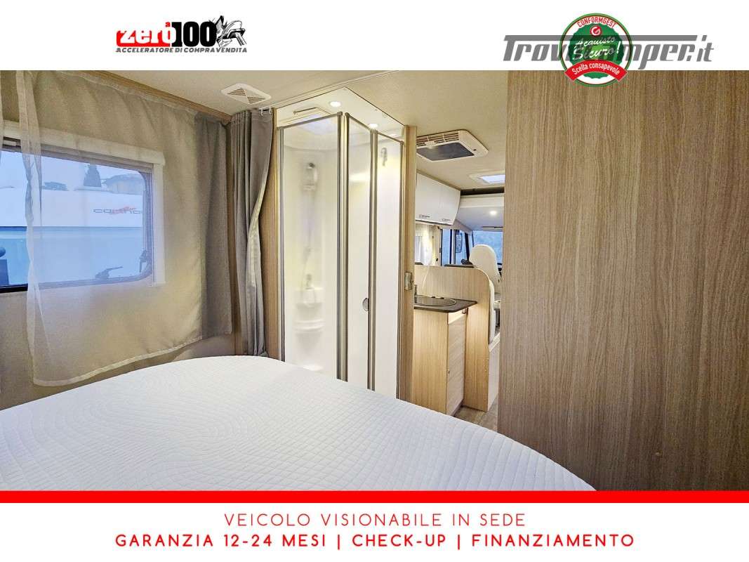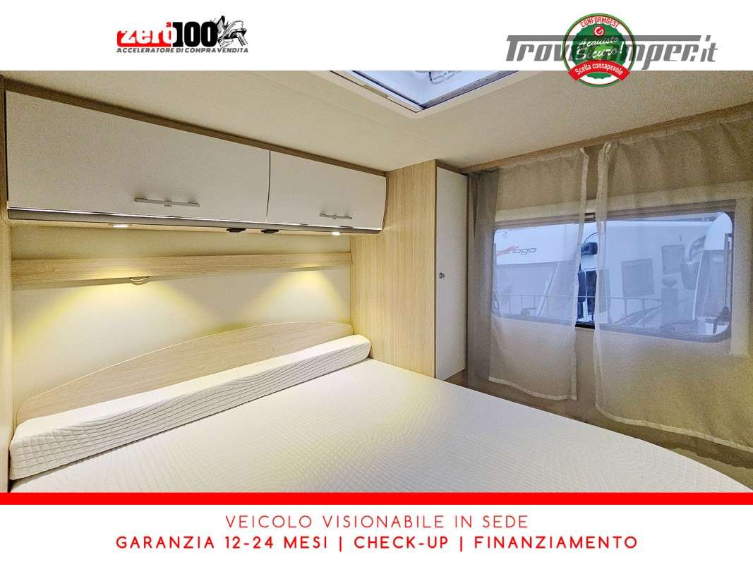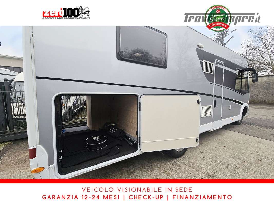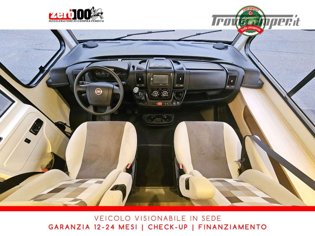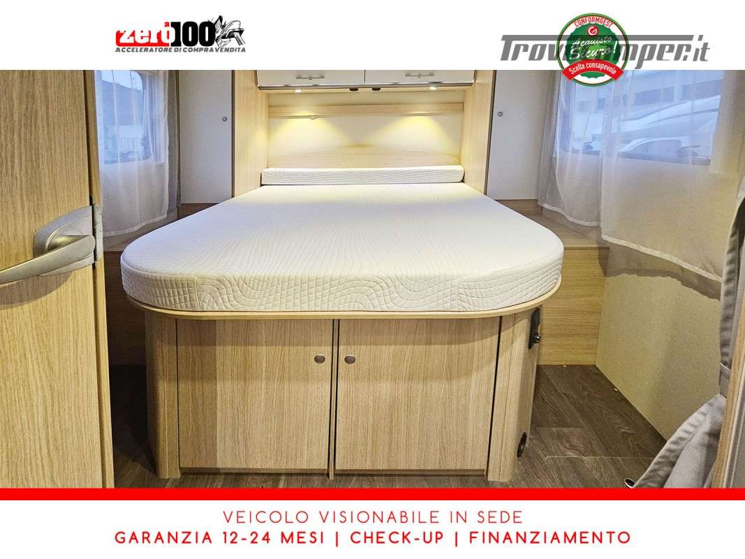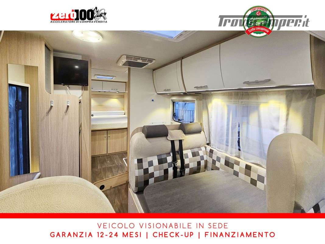 Letto nautico in coda – Mezza dinette con sedili cabina girevoli – Letto basculante anteriore sopra cabina – Cucina lineare 3 fuochi con Frigorifero trivalente alto con cella freezer separata – Bagno composto da 2 vani separati entrambi con oblò e (lato dx toilette, lato sx Doccia indipendente) – Garage