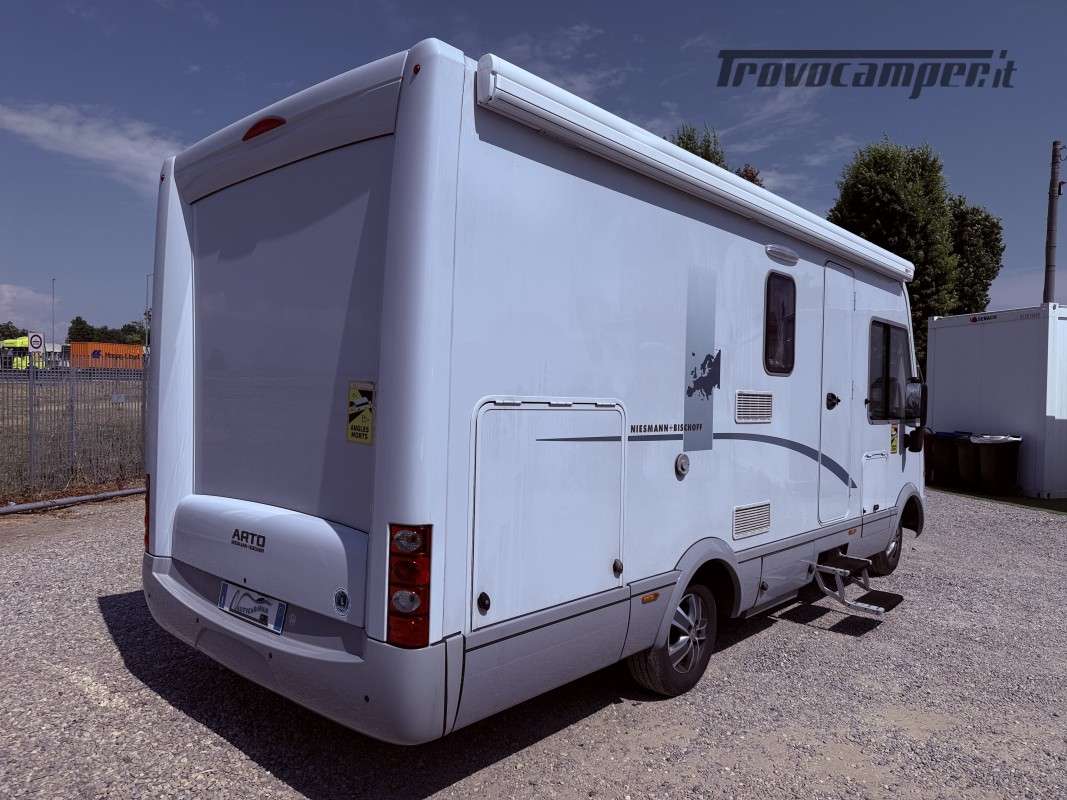 Presso la Nautycaravan di Binasco vediamo questo Motorhome di Qualità INDISTRUTTIBILE!! Top di gamma! MIESMANN+BISCHOFF ARTO 64 G, su meccanica Fiat 2.3 da 130 CV un missile!!, del 12/2007, con soli 134.000 km!! sempre tagliandato e super coccolato con fatture dimostrabili sempre al coperto!! SCOCCA in ALLUMINIO e VETRORESINA, DOPPIO PAVIMENTO !! una SUITE su ruote!!,così composto in coda un comodissimo letto matrimoniale trasversale comodo alla salita, BAGNO CON DOCCIA generosa!! una cucina con tanto spazio per lo stivaggio alimentare e una dinette che sembra un salotto di casa PAZZESCO e TUTTO TENUTO IN MODO MANIACALE.. FANTASTICO!!