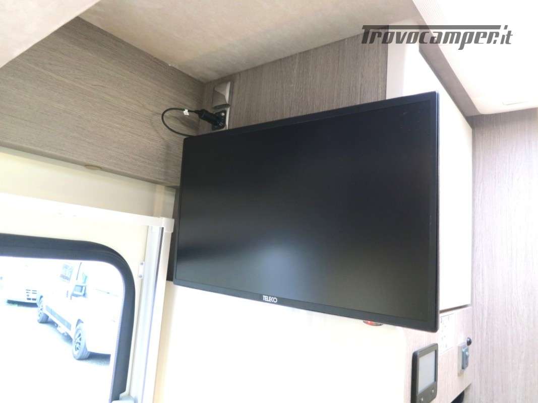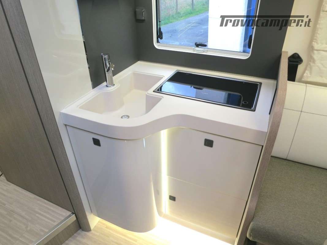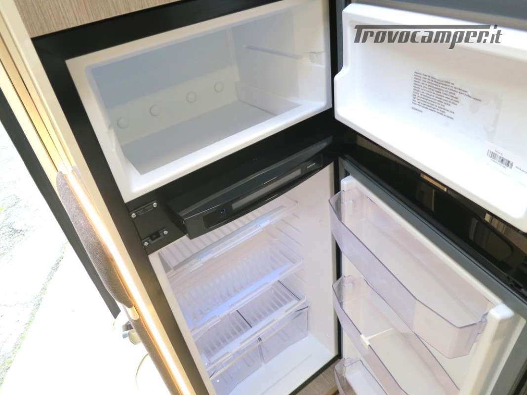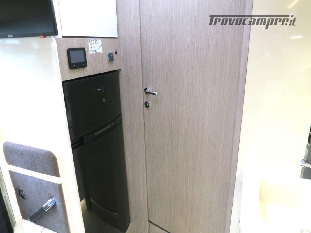 Con letti gemelli in coda, e letto matrimoniale basculante, questo camper è anche dotato di un garage che può ospitare fino a 4 bici.