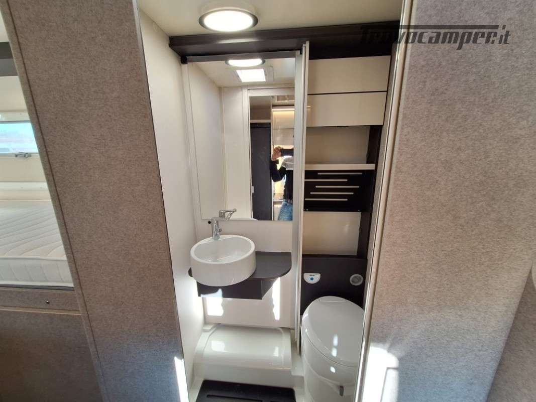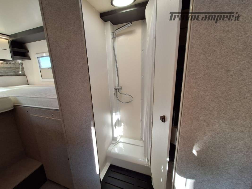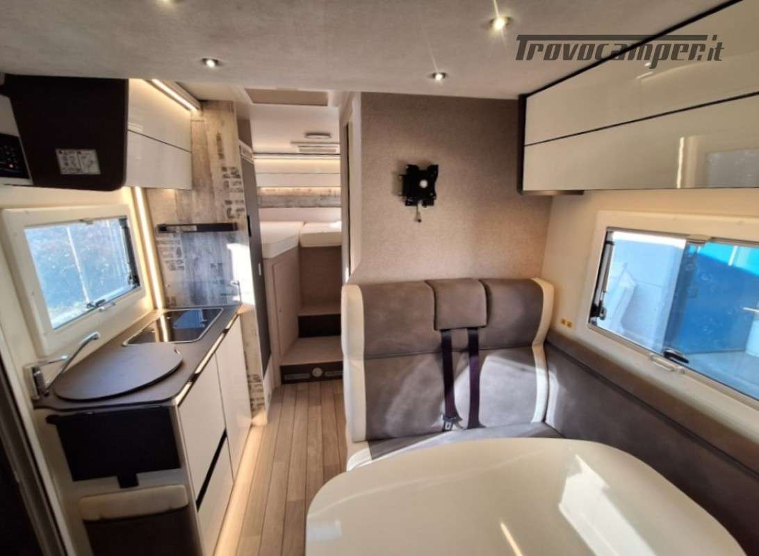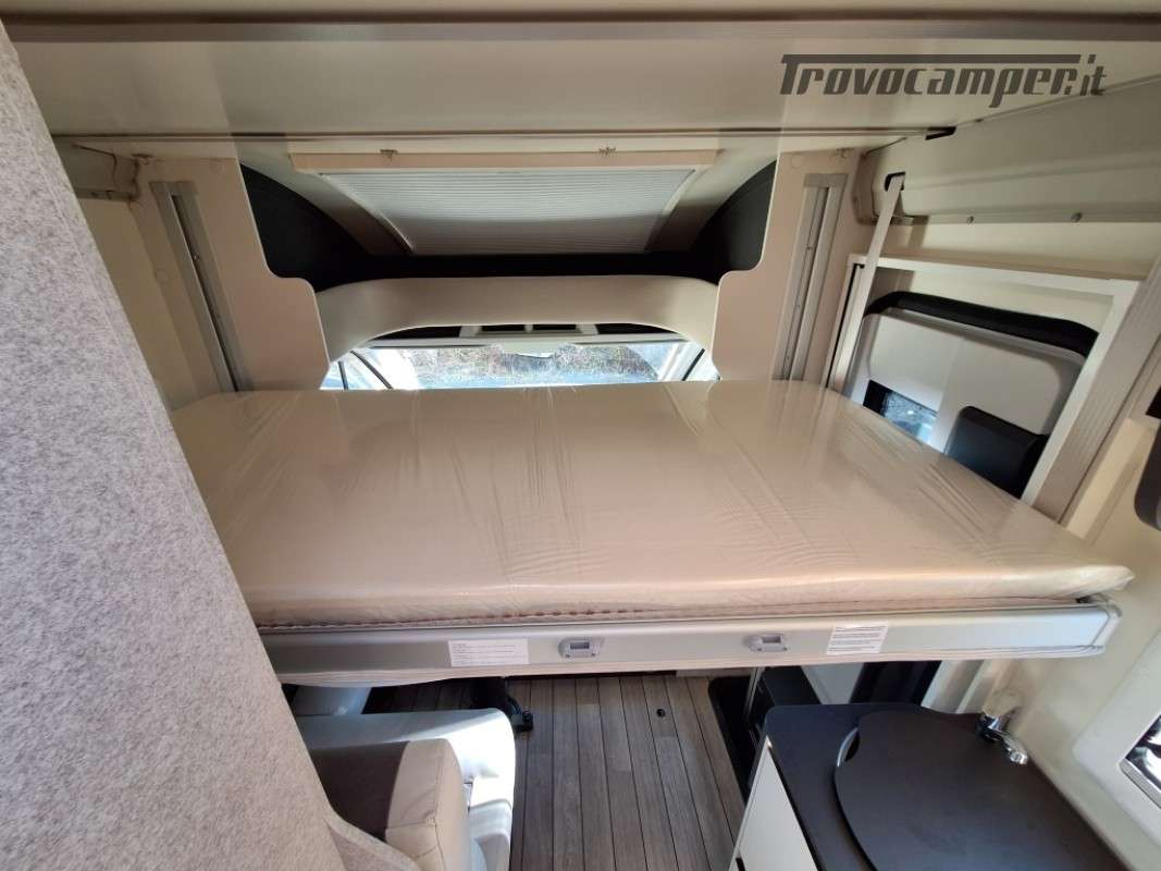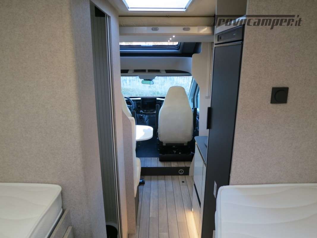 Con letti gemelli in coda, e letto basculante singolo, questo camper è anche dotato di un piccolo garage che può ospitare fino a 2 bici.