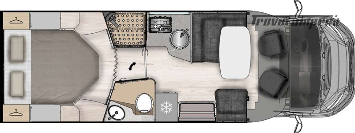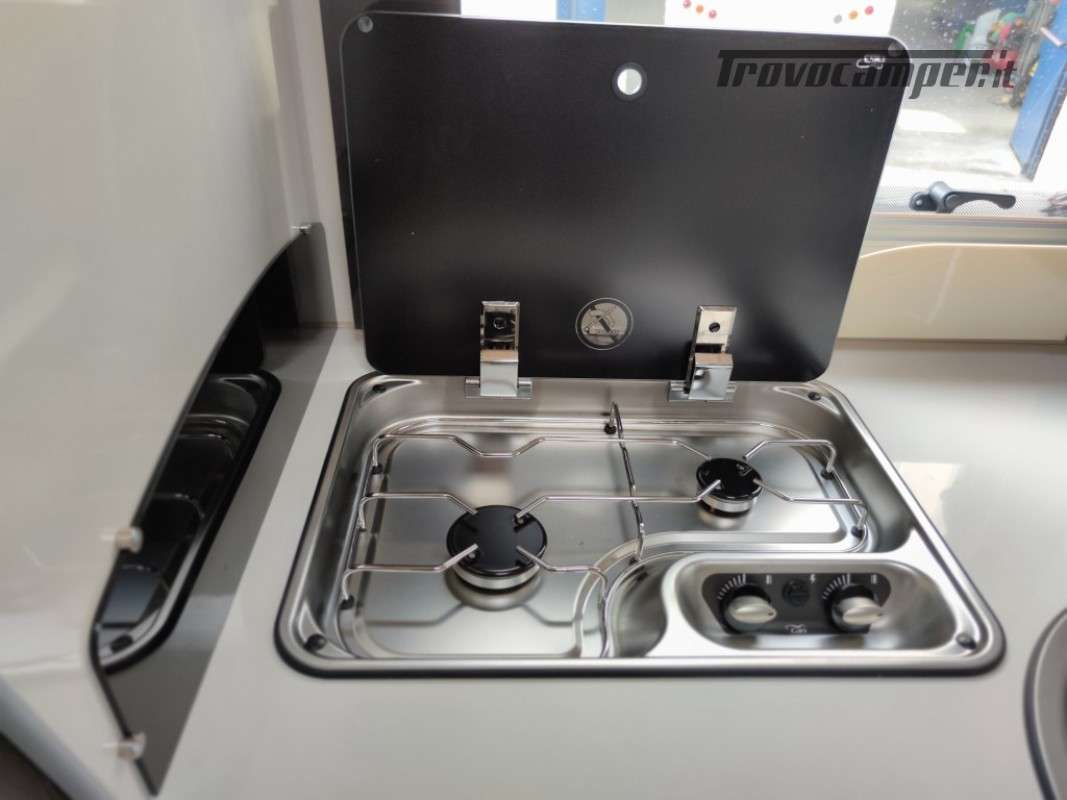 Con letto centrale ovvero nautico in coda, e letto matrimoniale basculante, questo camper è anche dotato di un garage che può ospitare fino a 4 bici.